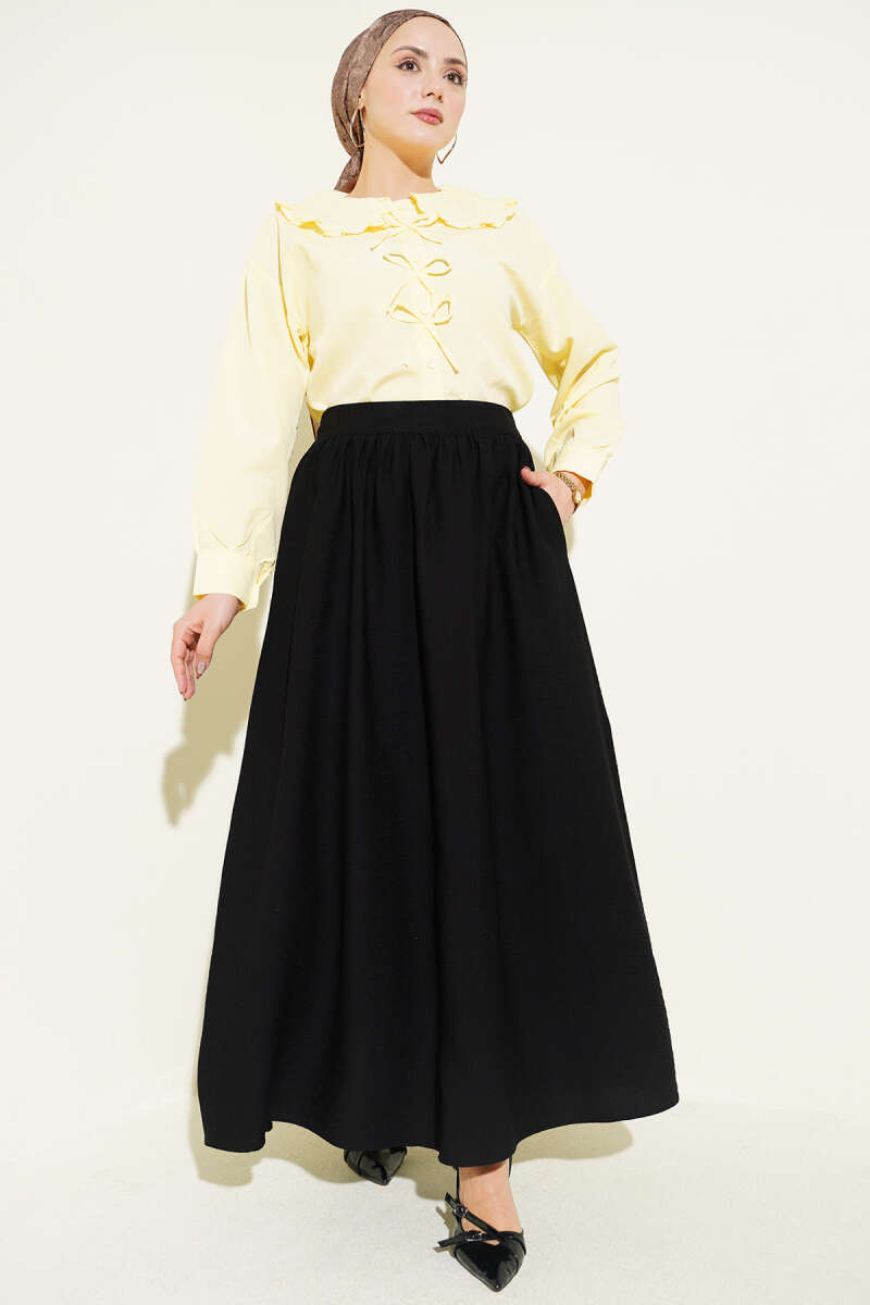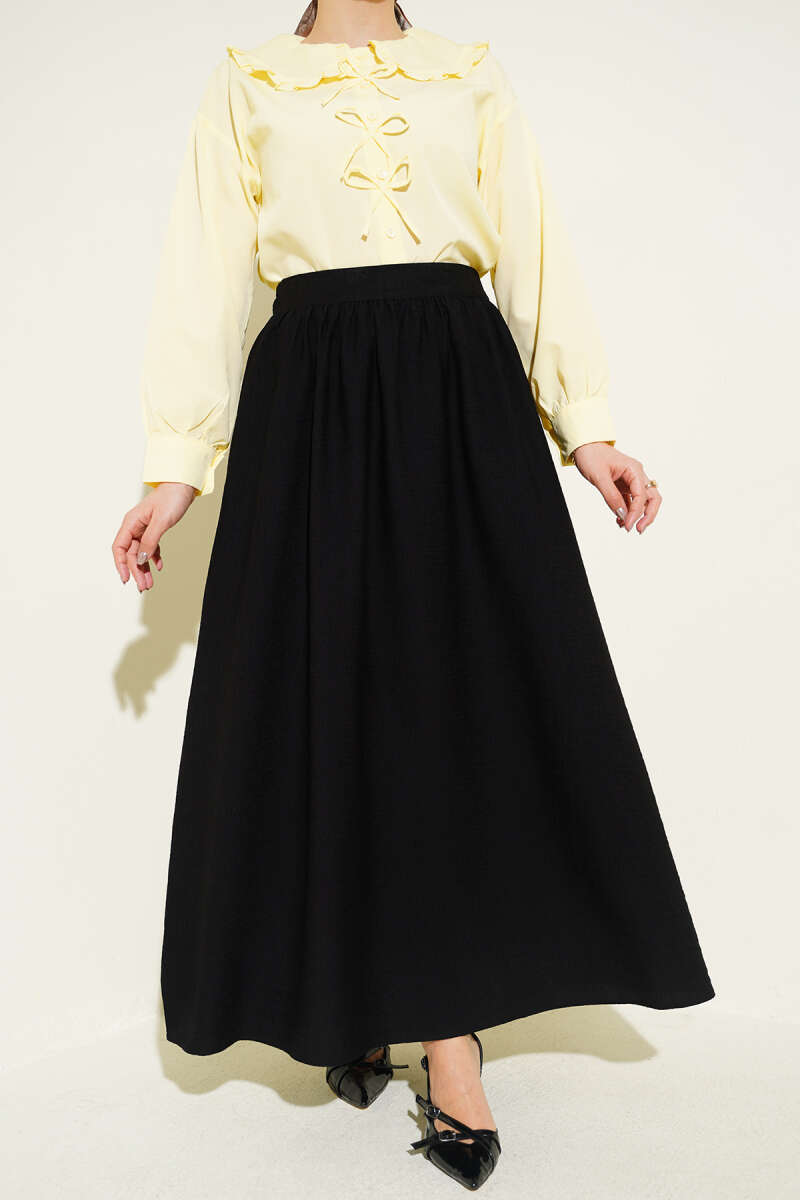 Bel Lastikli Büzgülü Kloş Etek Siyah