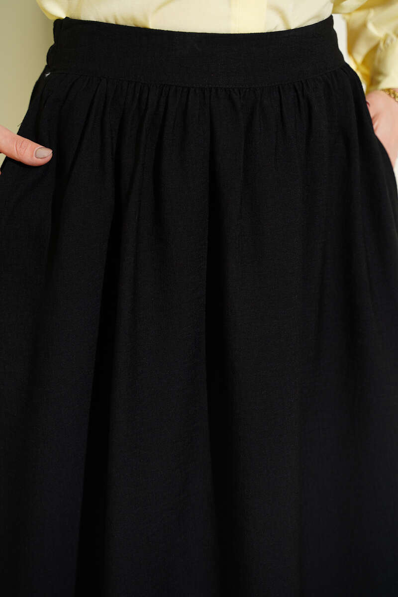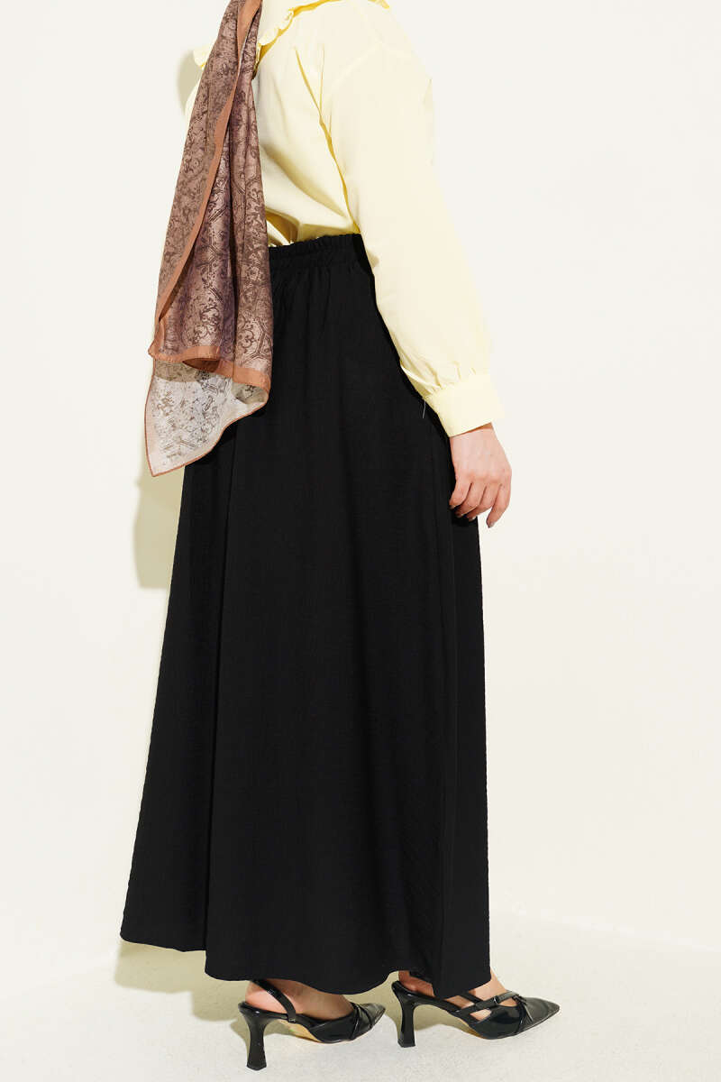 Bel Lastikli Terikoton Etek Siyah