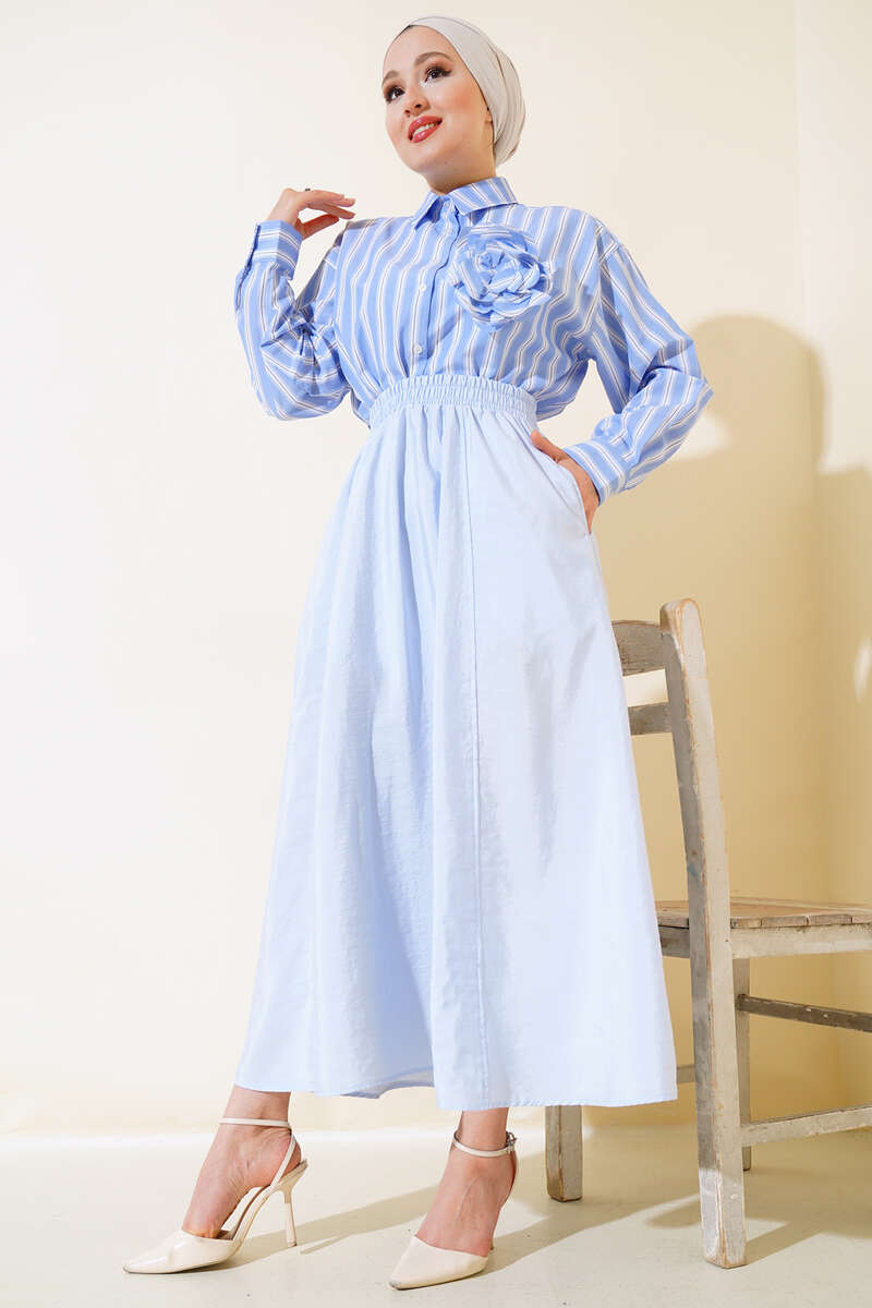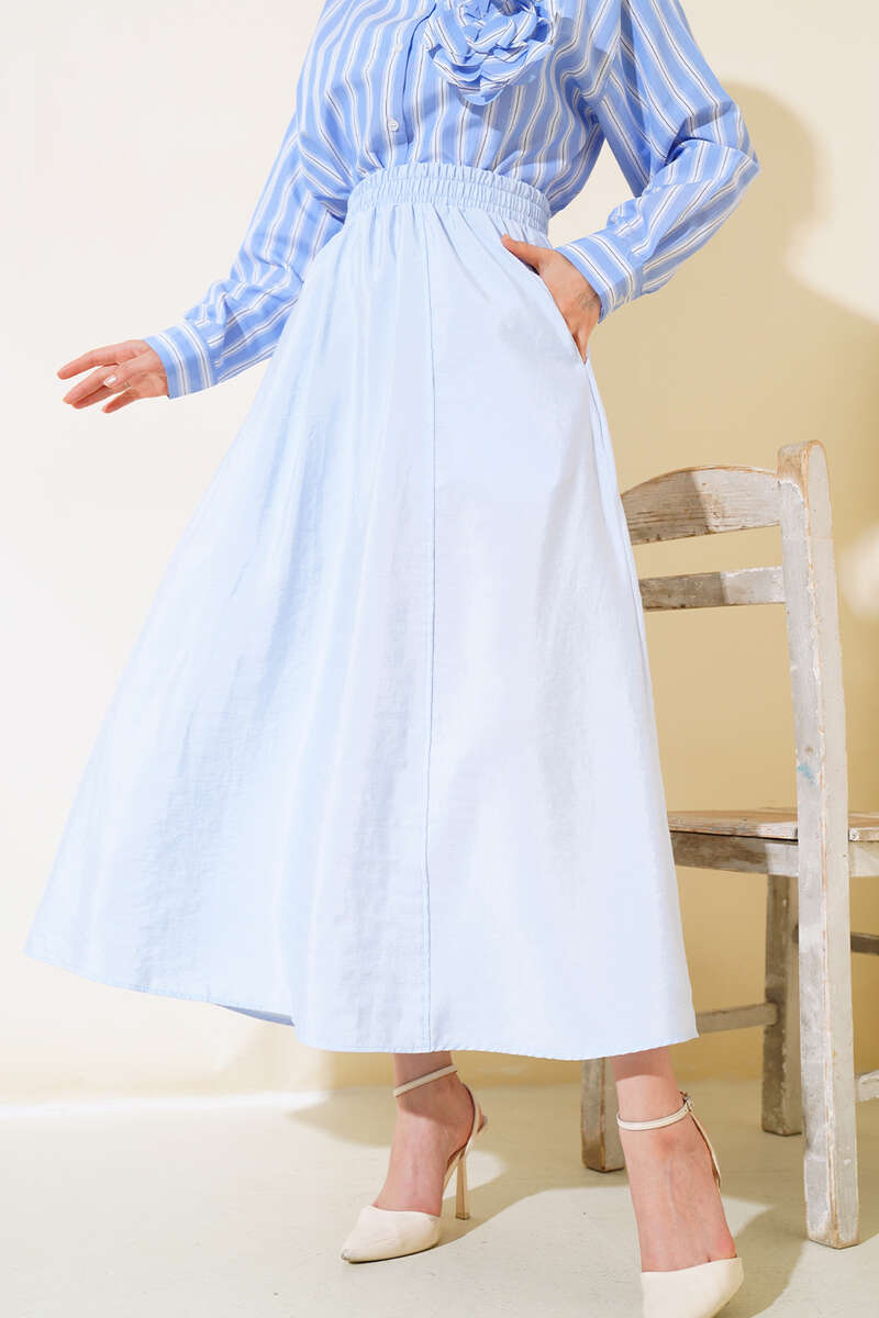 Bel Lastikli Çan Etek Mavi