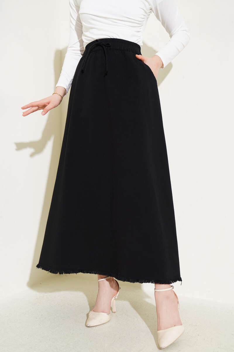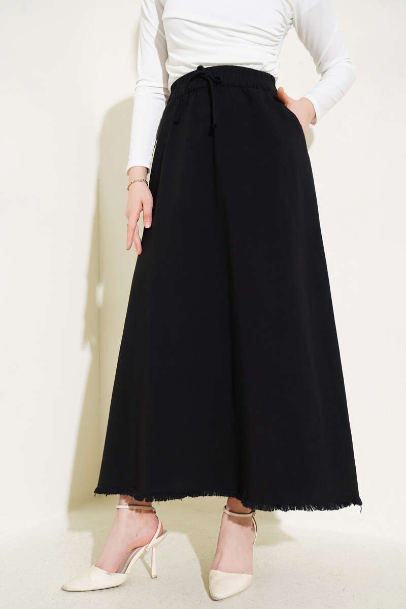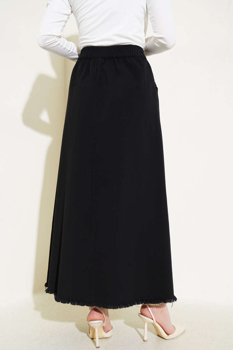 Dikişli Fitilli Kaşe Etek Siyah