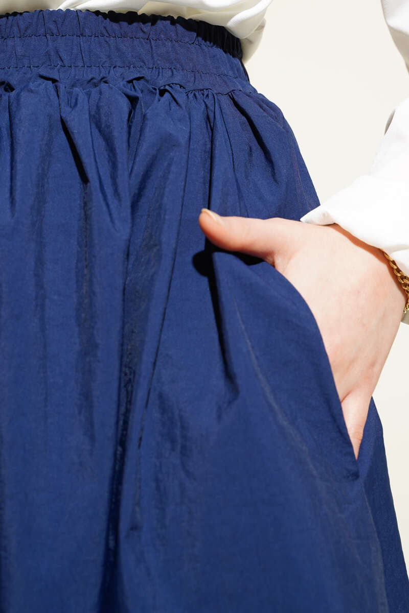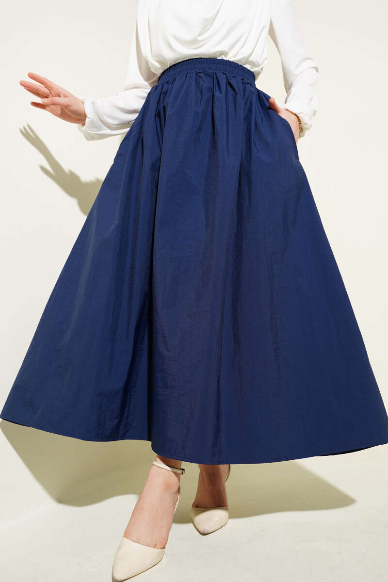 Beli Lastik Detaylı Kloş Scuba Etek Lacivert