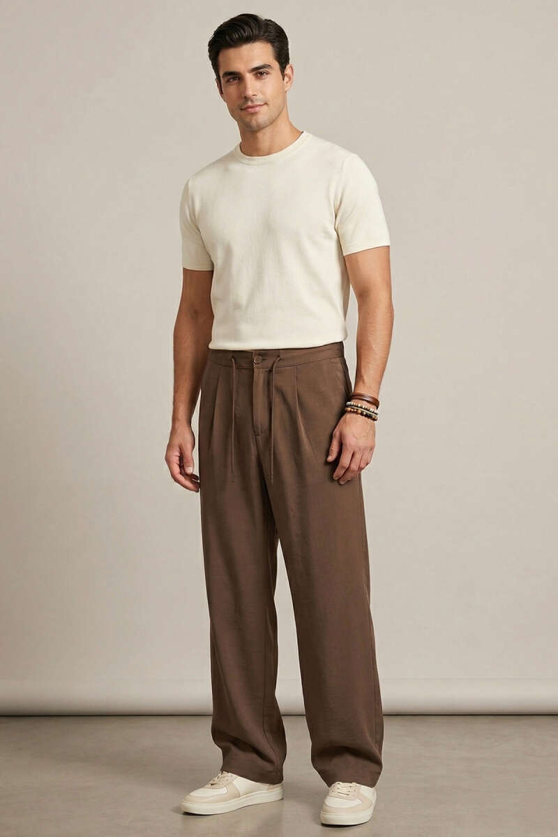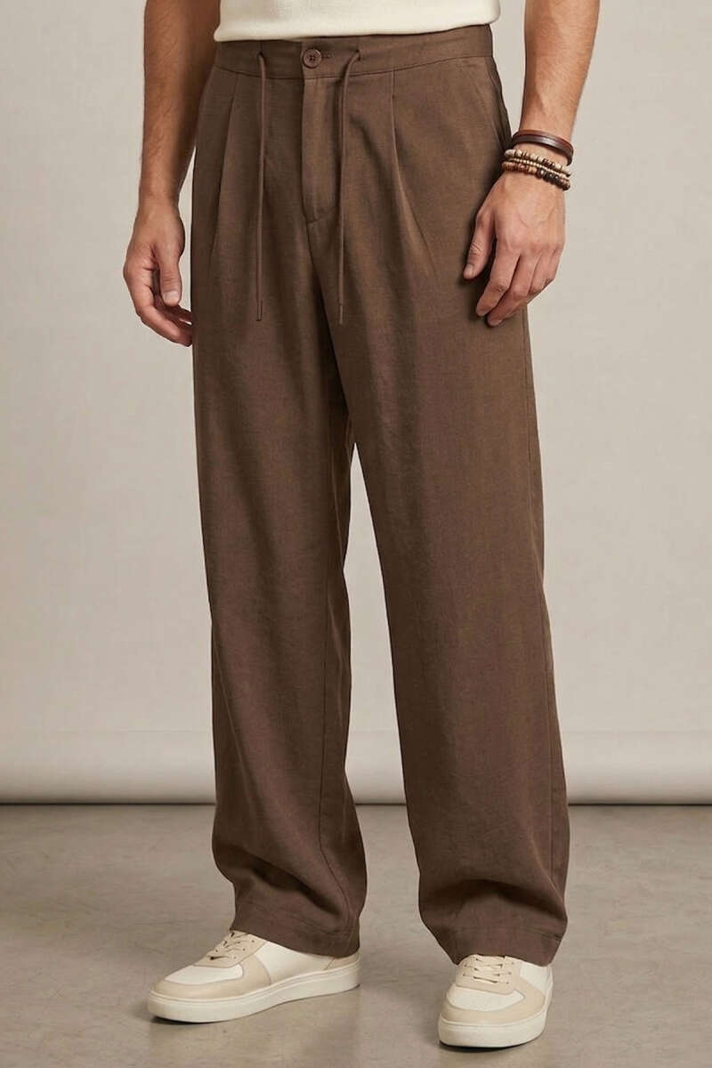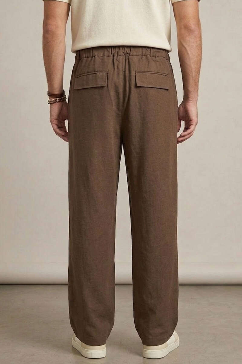 Armürlü Erkek Keten Pantolon Bej