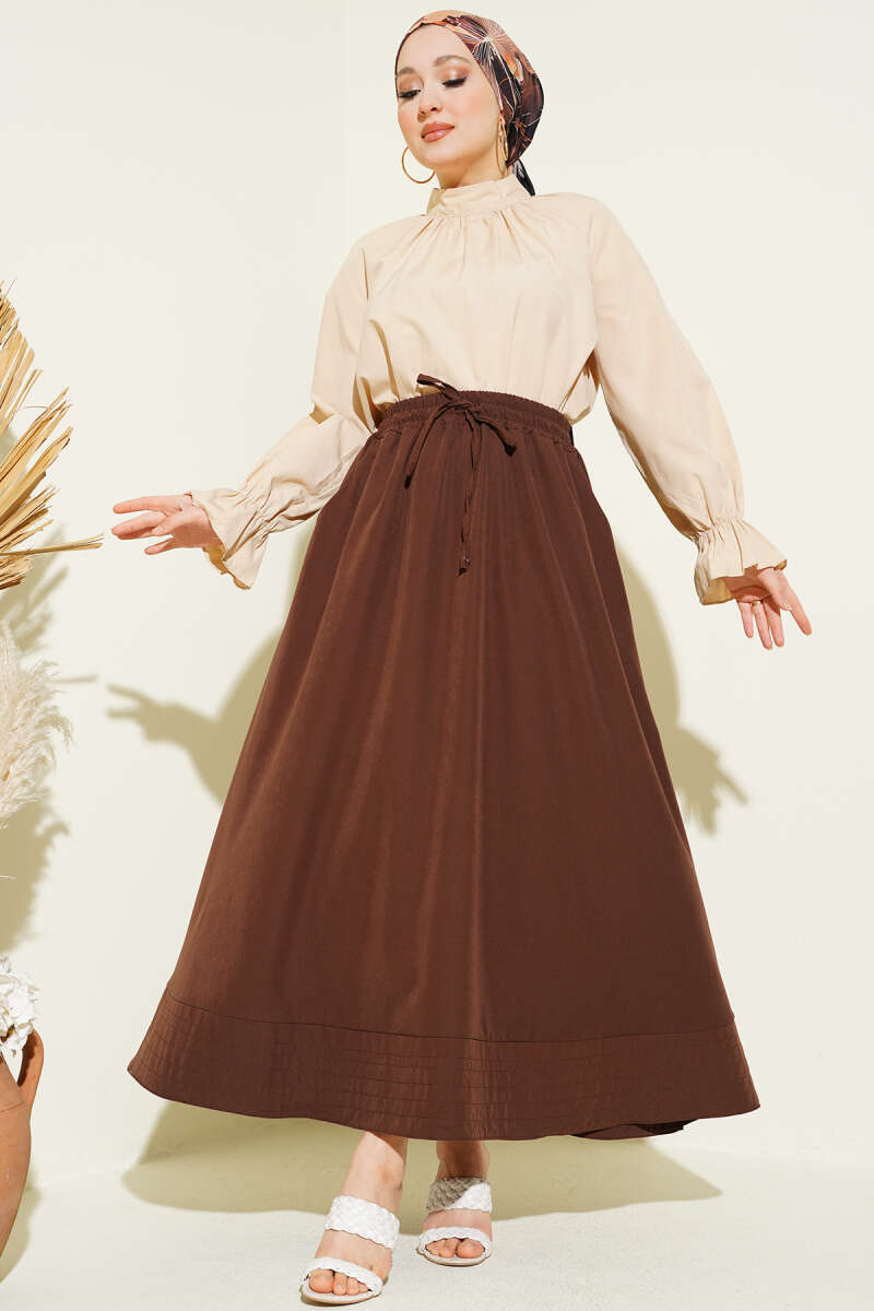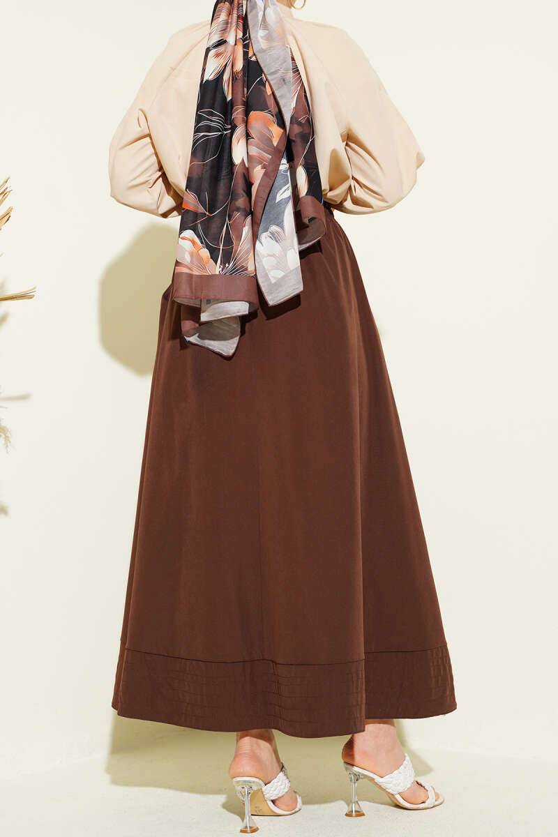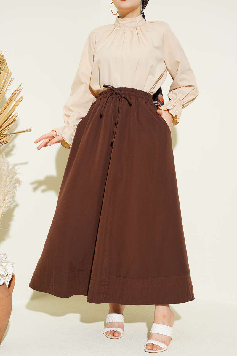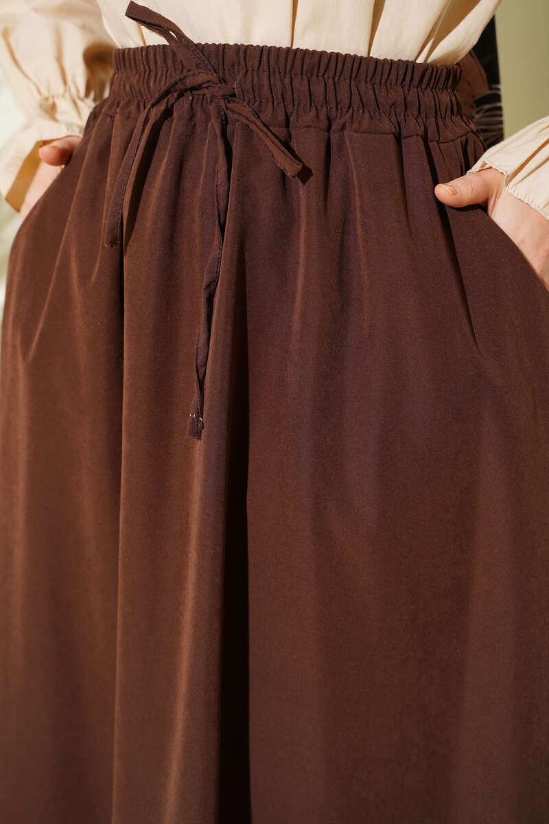 Bel Lastikli Kraş Cepli Etek Kahve