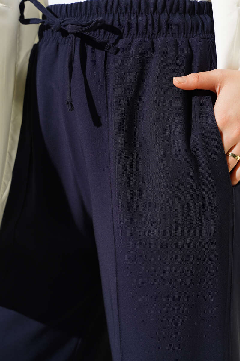 Cepli Keten Geniş Paça Pantolon Lacivert
