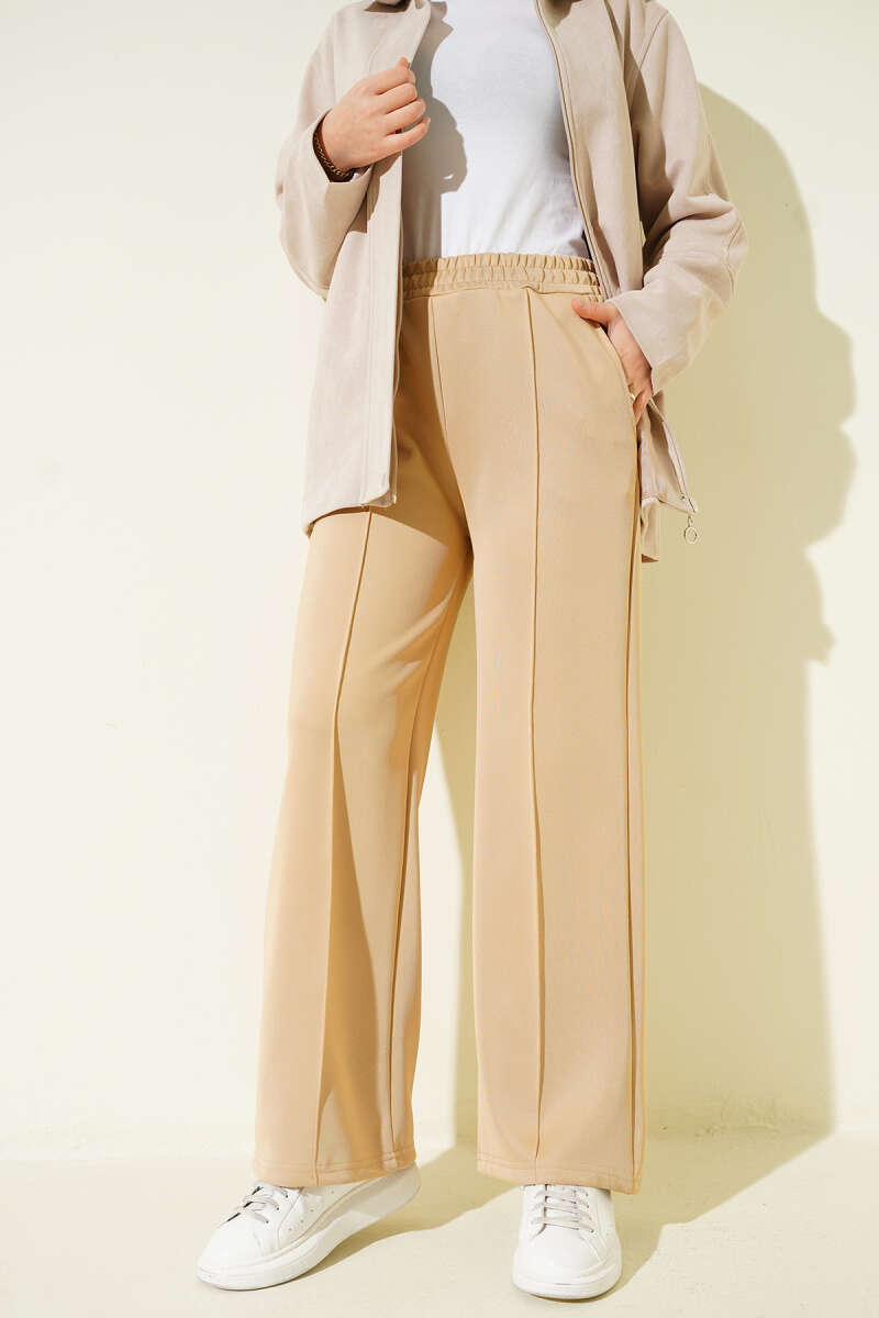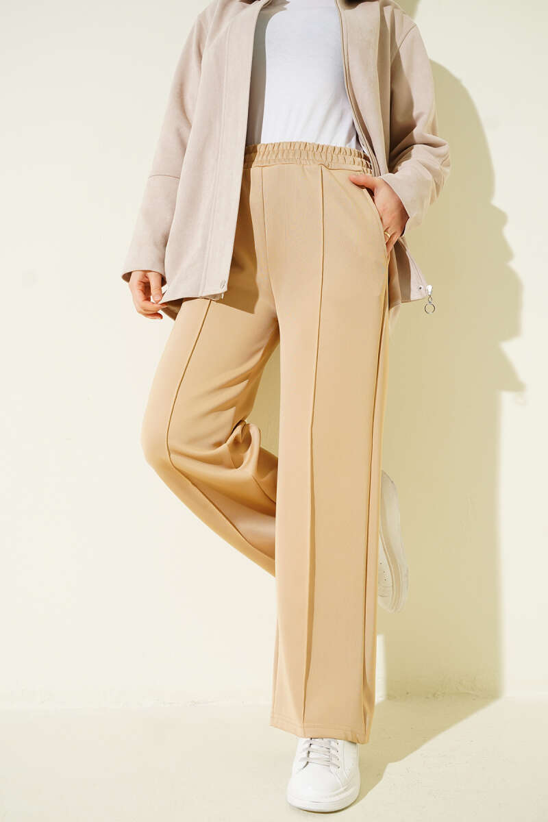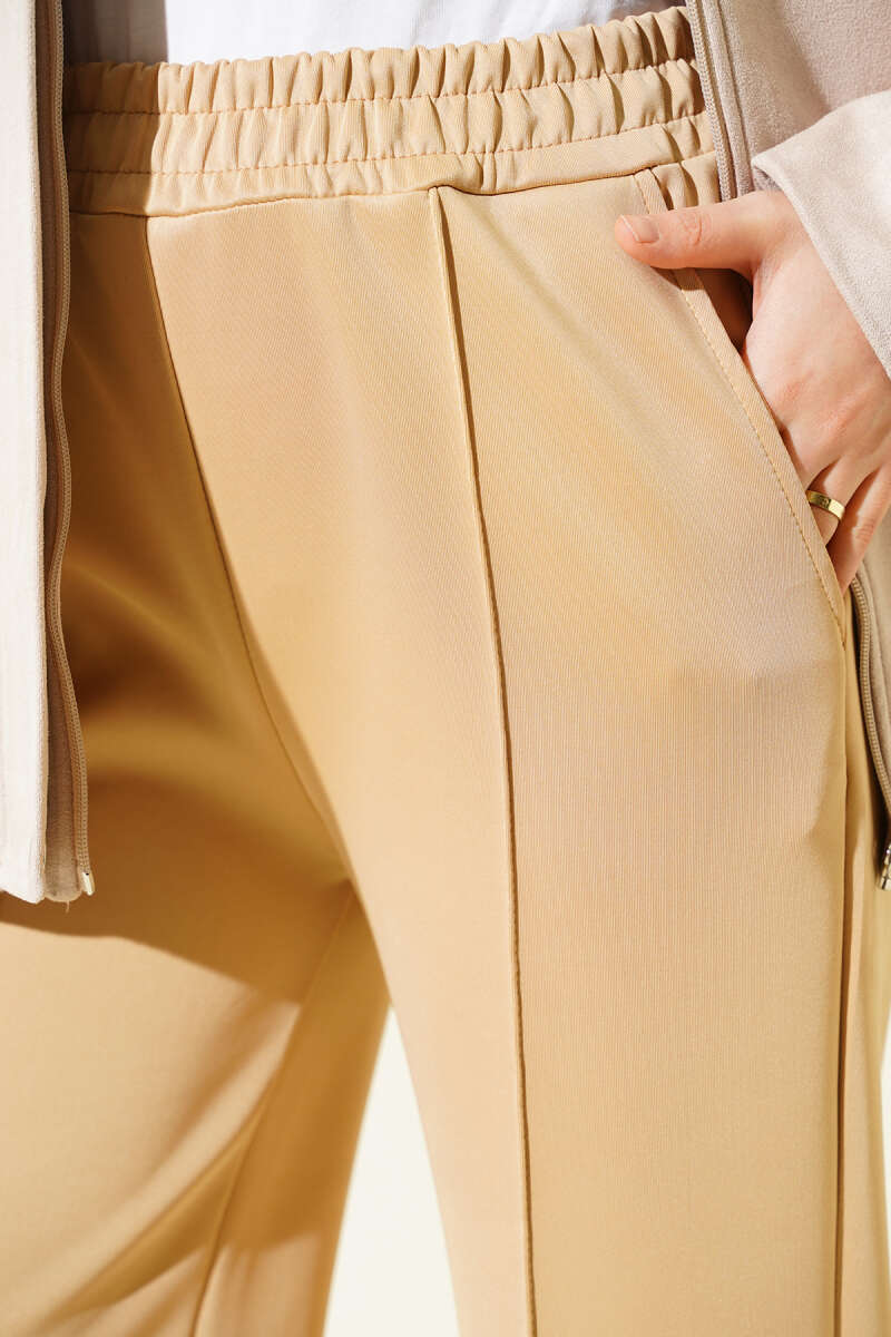 Bel Lastikli Çımalı Scuba Pantolon Bej