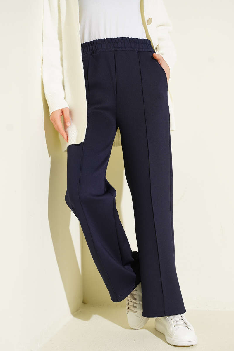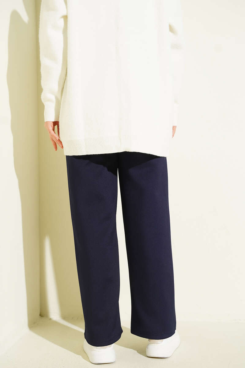 Fitilli Geniş Paça Kaşe Pantolon Lacivert