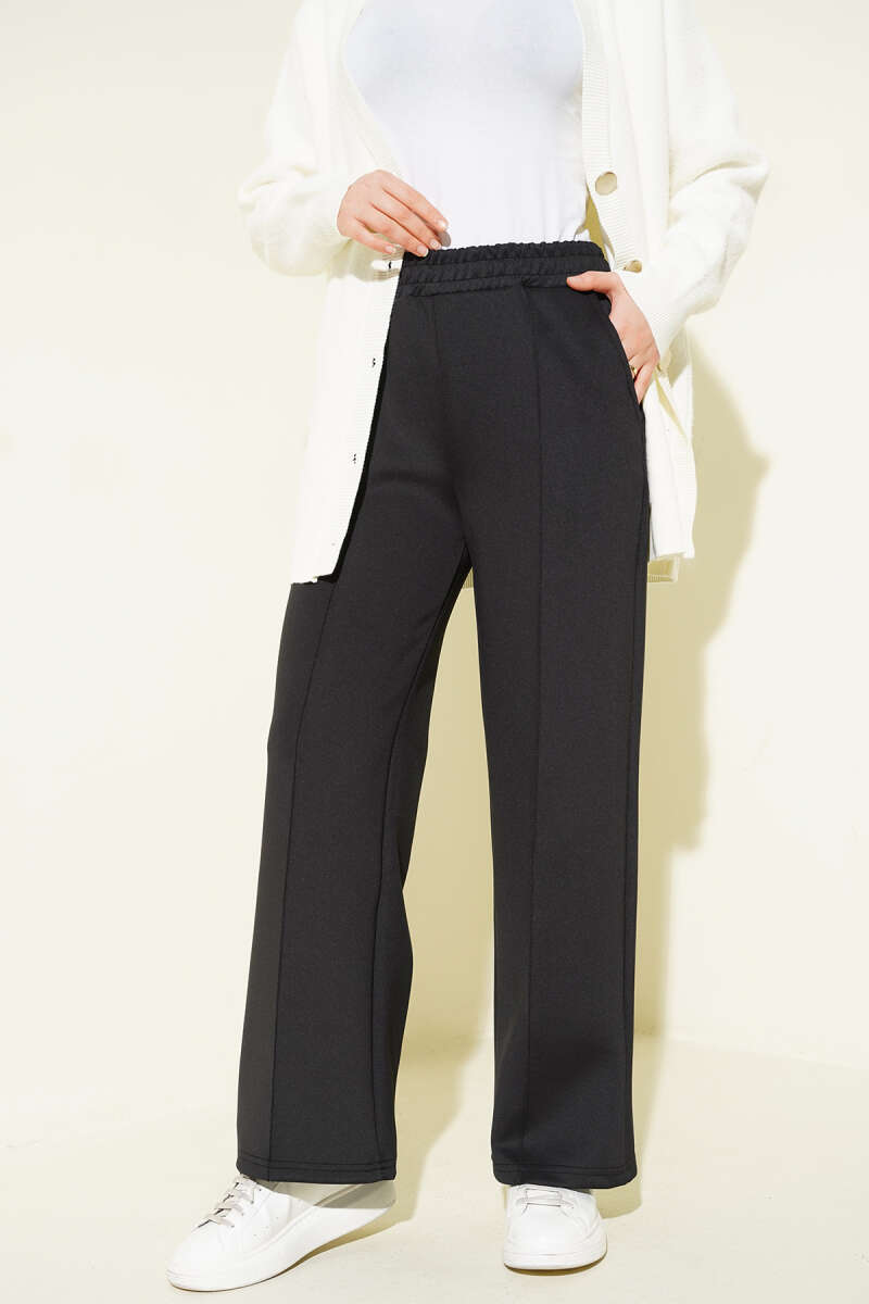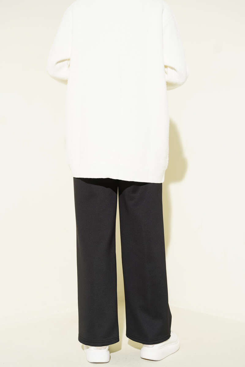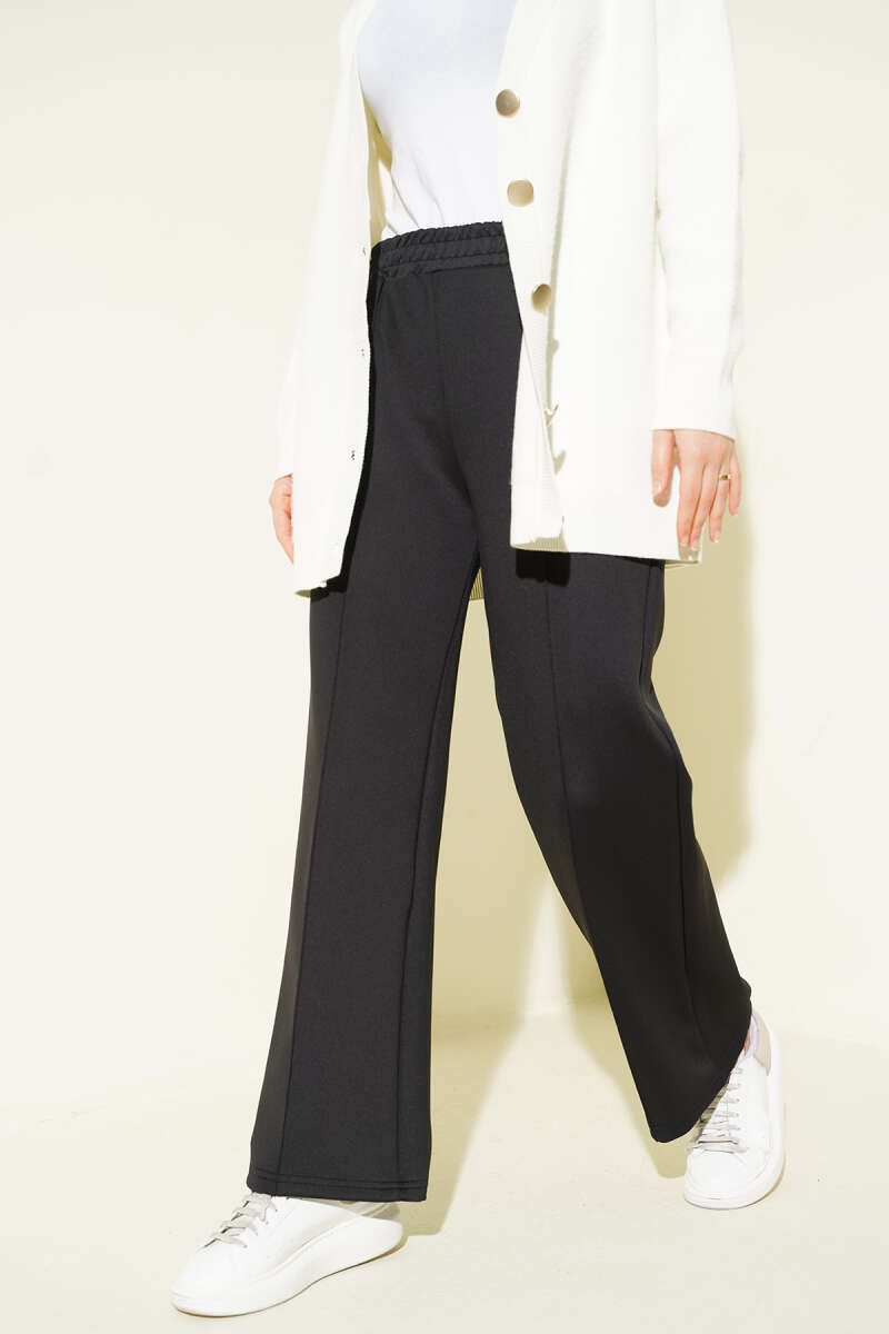 Fitilli Geniş Paça Kaşe Pantolon Siyah