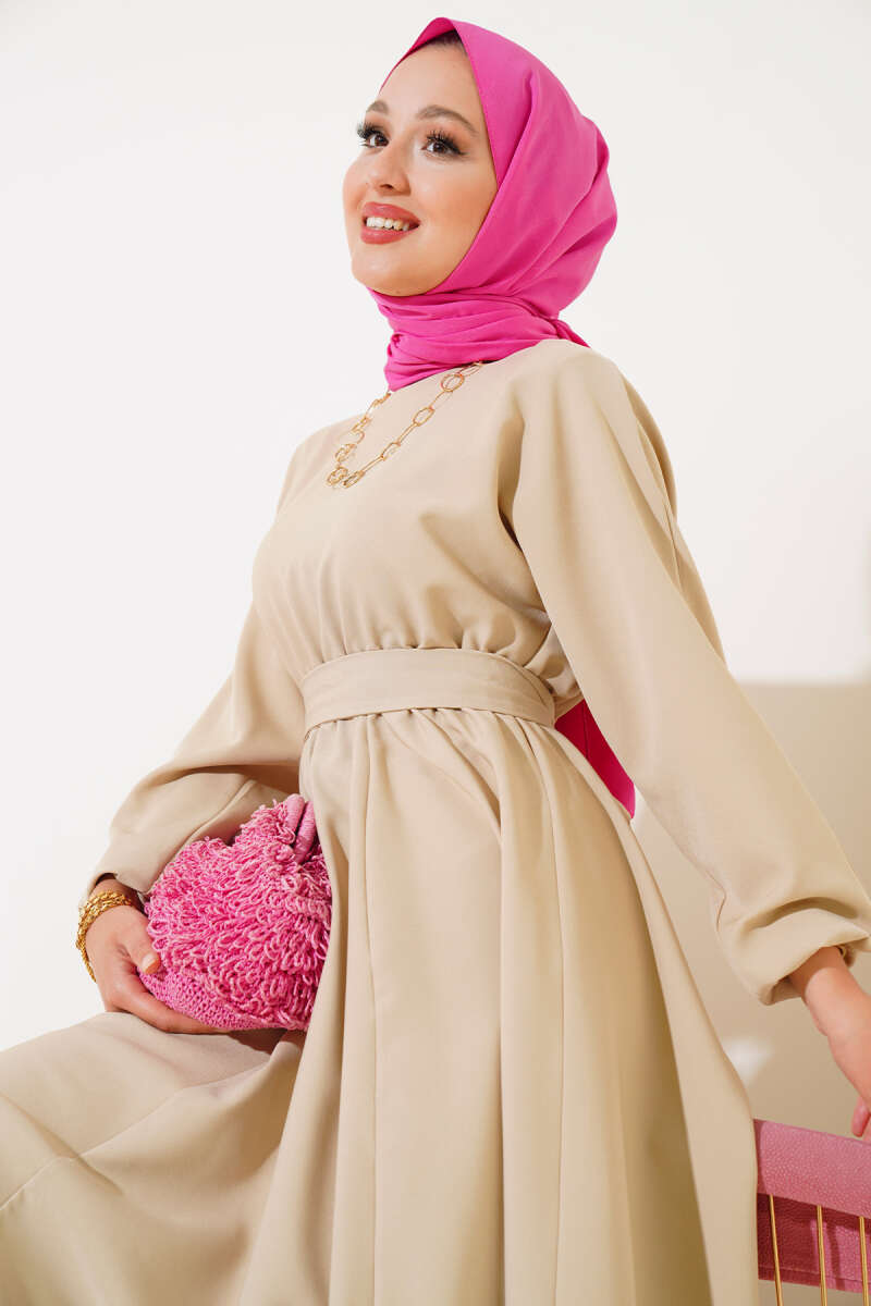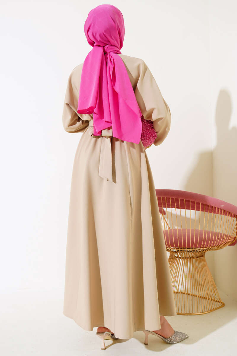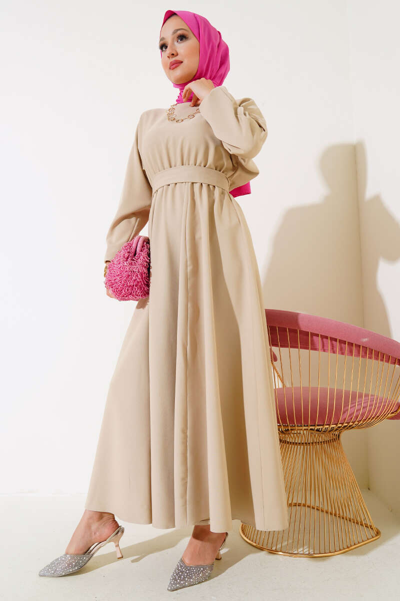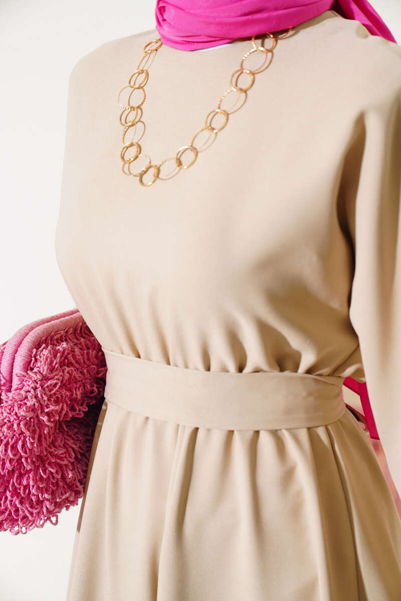 Bel Taşlı Pelerinli Abiye Elbise Kahve