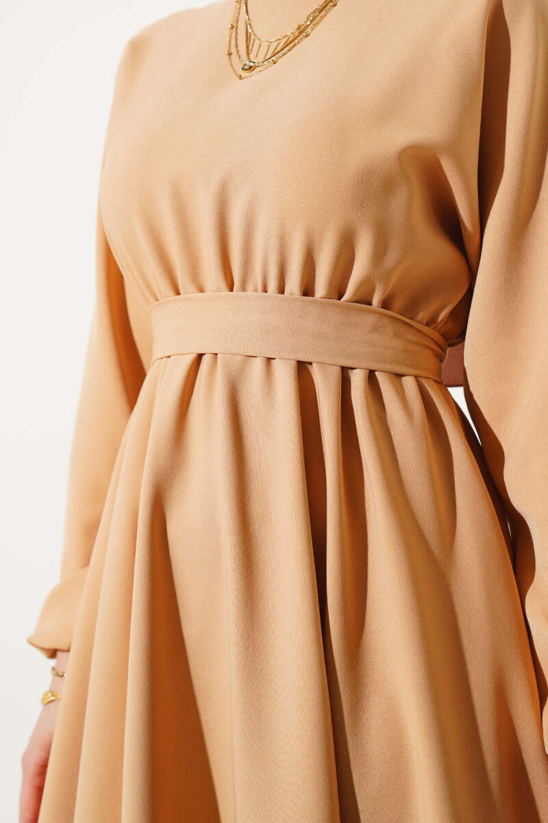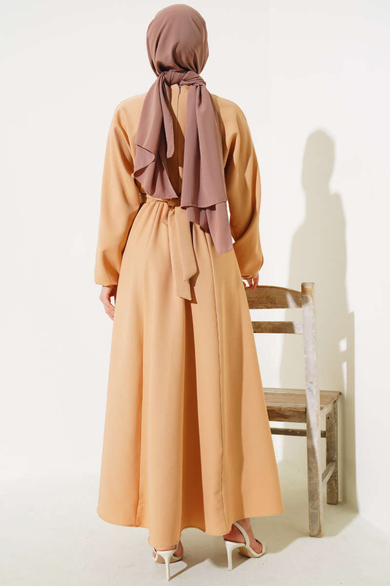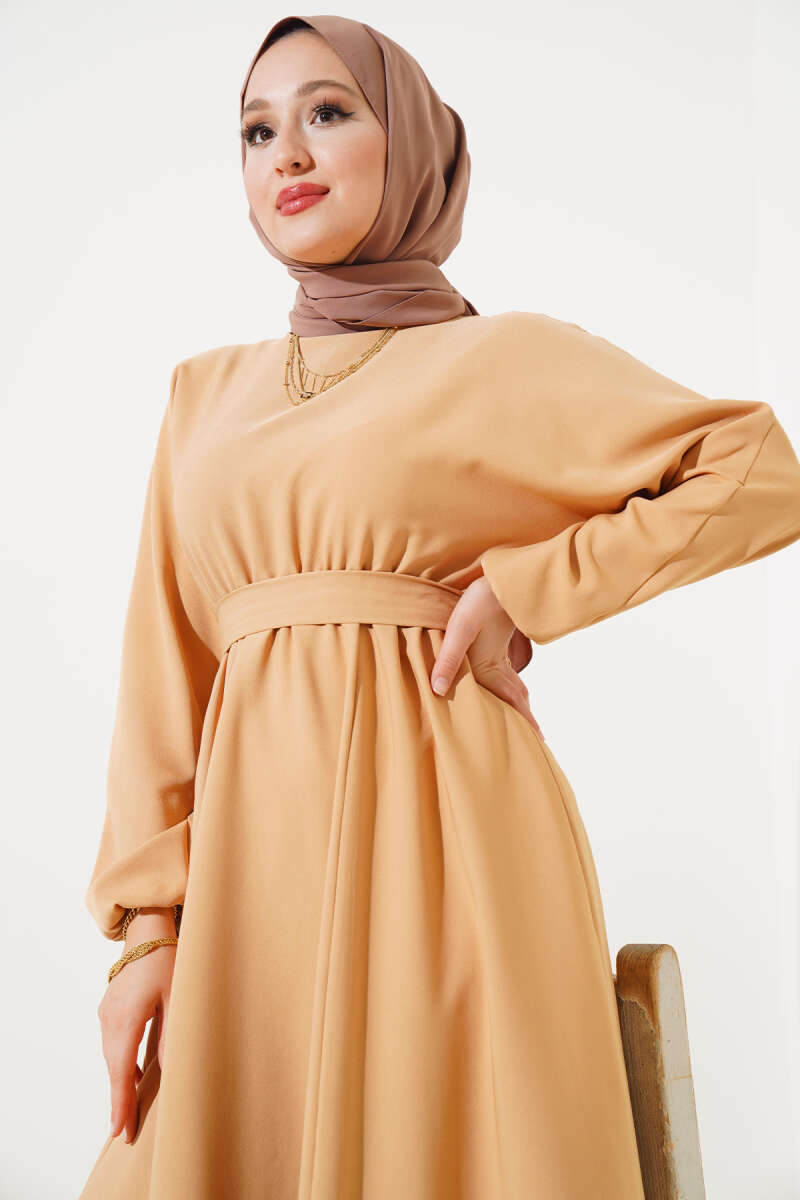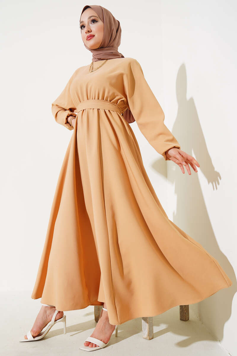 Bel Lastikli Dabıl Mevlana Elbise Latte