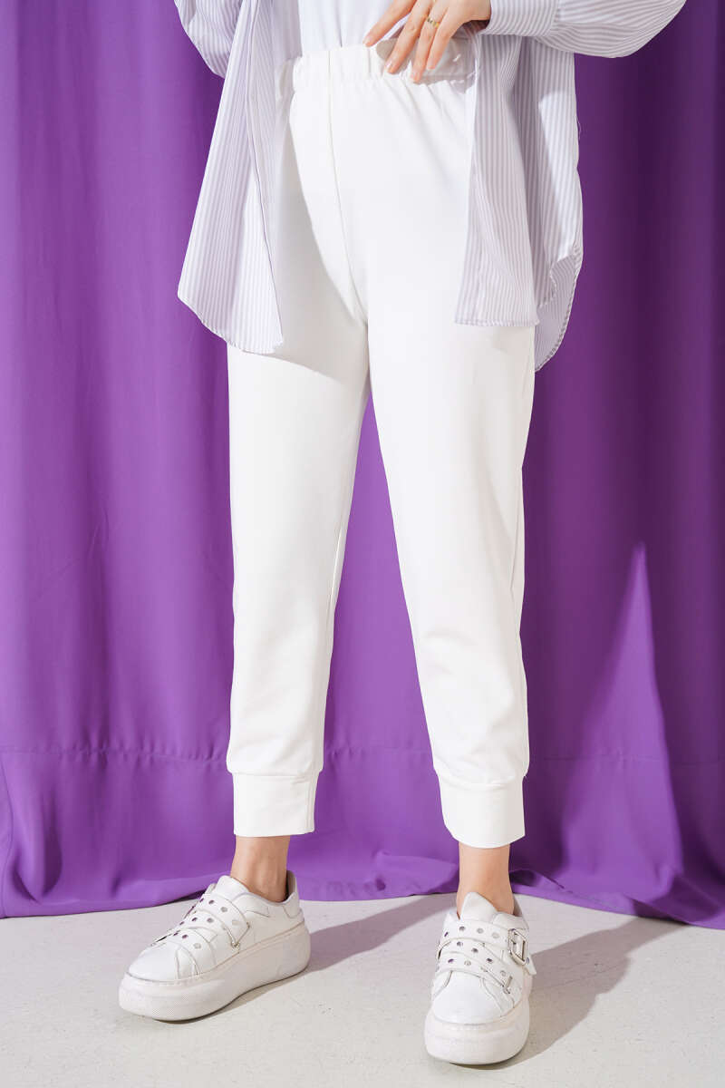 Bel Lastikli Dar Paça Basic Pantolon Ekru