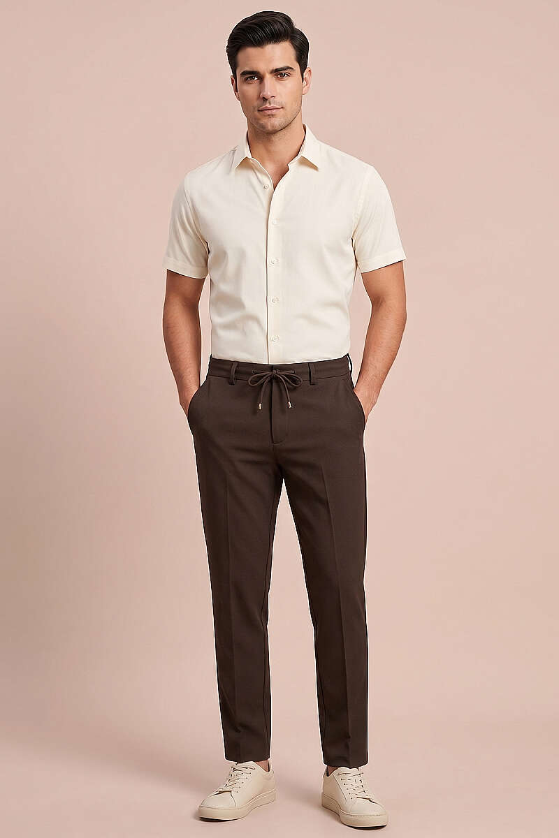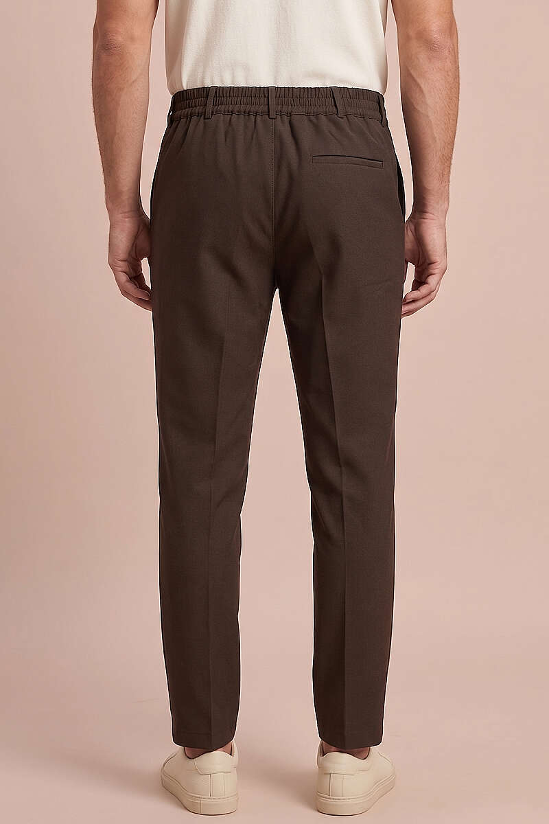Bel Lastikli Dar Paça Erkek Kumaş Pantolon Acı Kahve