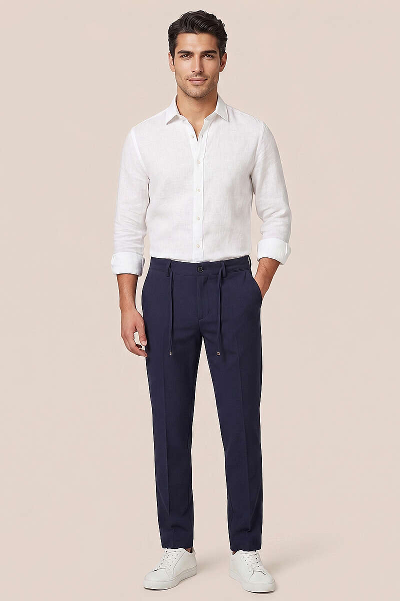 Bel Lastikli Dar Paça Erkek Kumaş Pantolon Lacivert