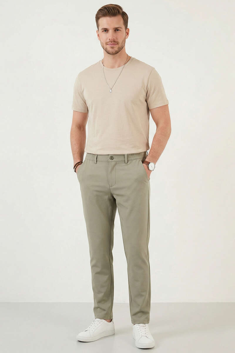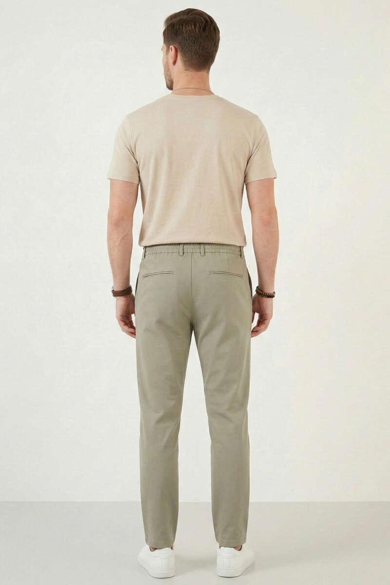 Bel Lastikli Dar Paça Erkek Pantolon Haki