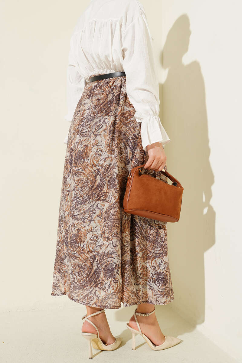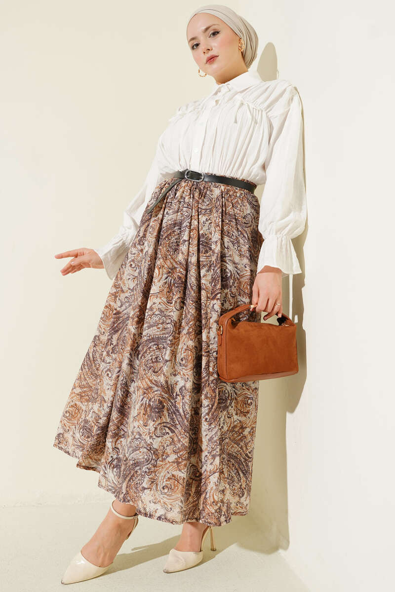Kemerli Pile Detaylı Etek Kahve