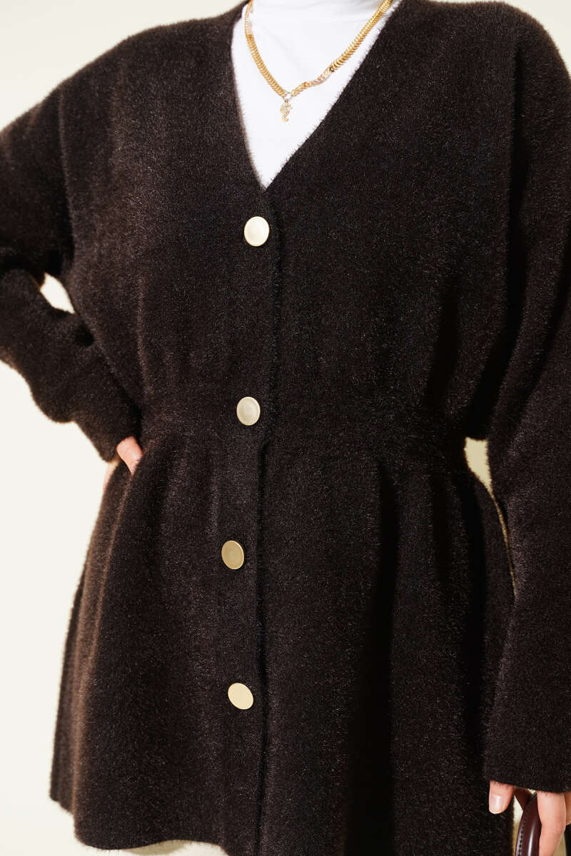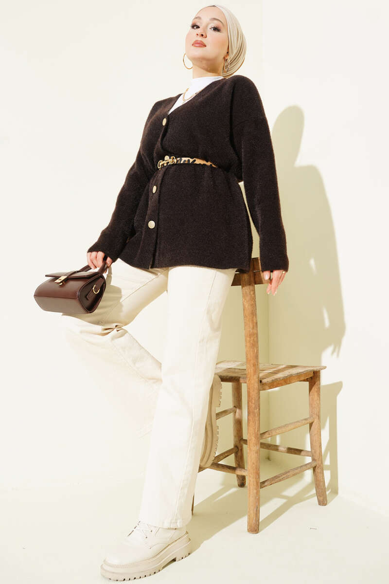 Sarmal Desen Detaylı Triko Hırka Kahve