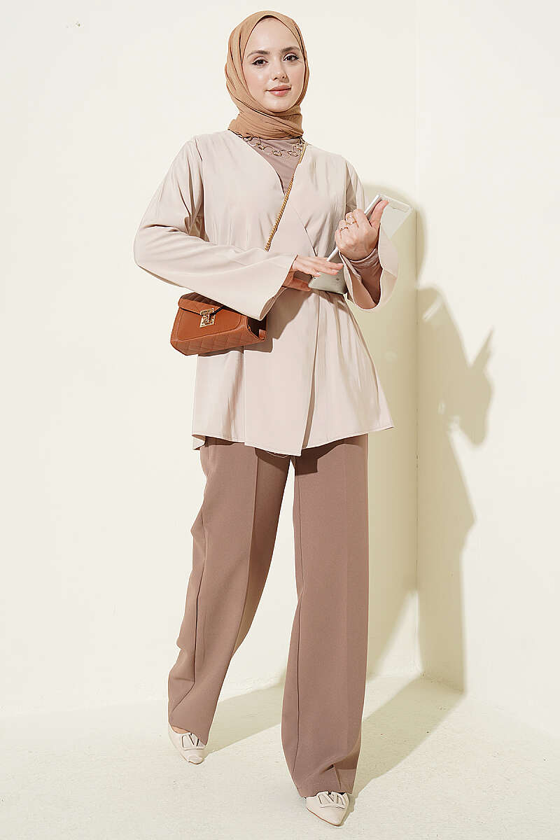 Bu ceket, tensel kumaşın yumuşak ve nefes alan dokusuyla birleşen beli lastikli tasarımı sayesinde vücut hatlarını zarifçe vurgulayan modern bir silüet sunar. Kruvaze kapama formundaki şık düğme detayları ve V yaka kesimi, tasarıma sofistike bir hava katarken günlük kullanım için de büyük konfor sağlar. Geniş kol yapısı ve dökümlü alt kısmıyla hem klasik hem de spor kombinlere kolayca uyum sağlayan, gardırobunuzun kurtarıcı parçalarından biri olmaya adaydır.