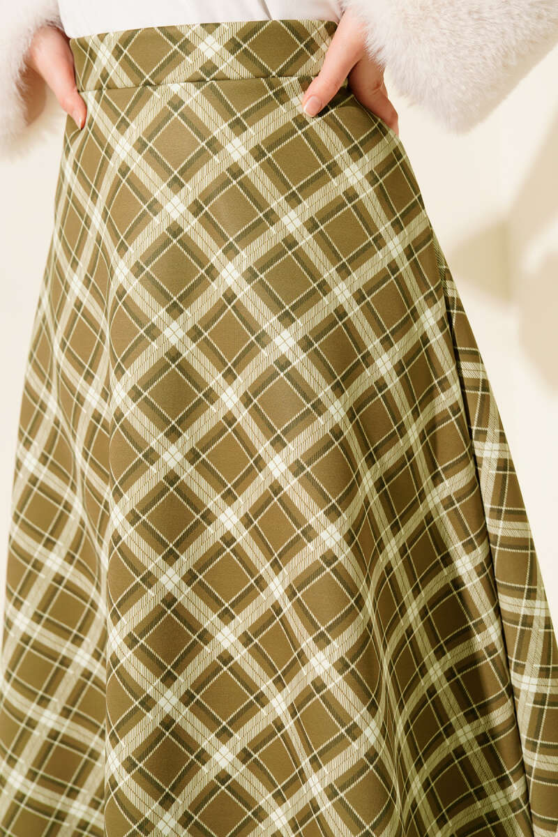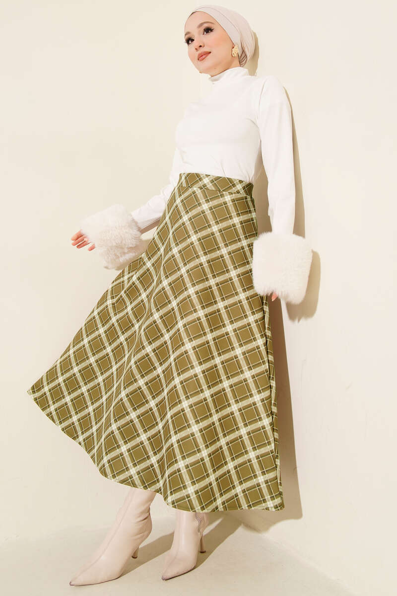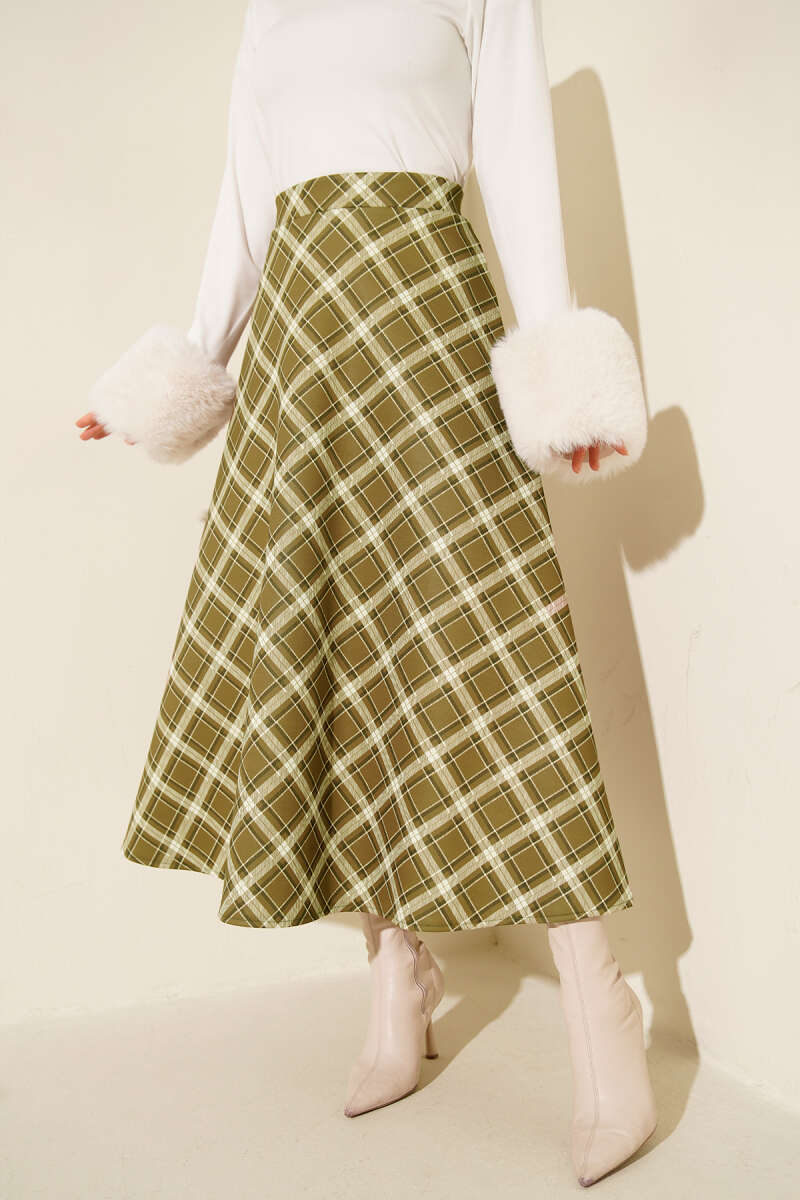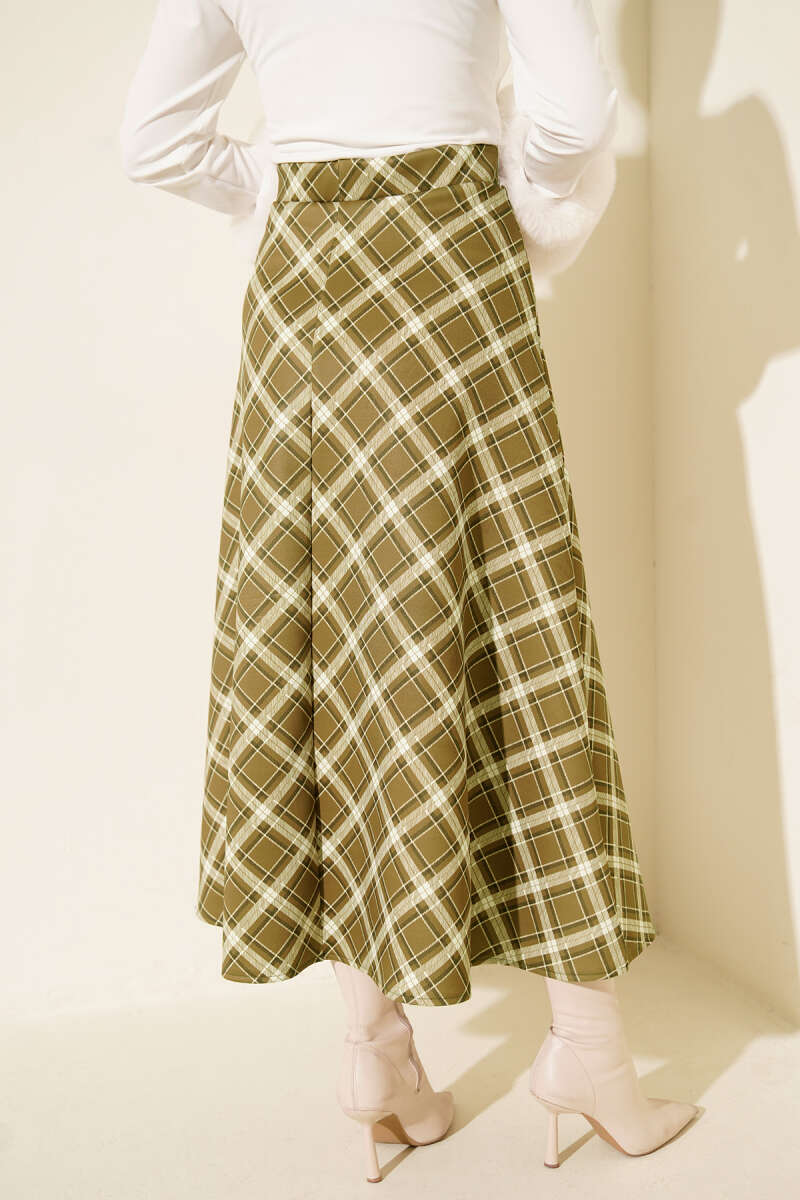 Ekose Desen Cepli Kaşe Etek Haki Lacivert