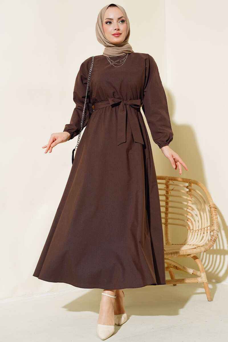 Yeni sezon elbisemiz sizler için geldi. Elbisemizin beli lastiklidir. Yarasa koldur. Kol bilekleri lastiklidir. Elbisemizin kendi kumaşından kuşağı vardır. Ense düğmelidir. Astarsızdır. Sade ve sportif tasarımlı elbisemiz bahar ve yaz aylarının favorisi olacaktır. Renk seçenekleri mevcuttur.