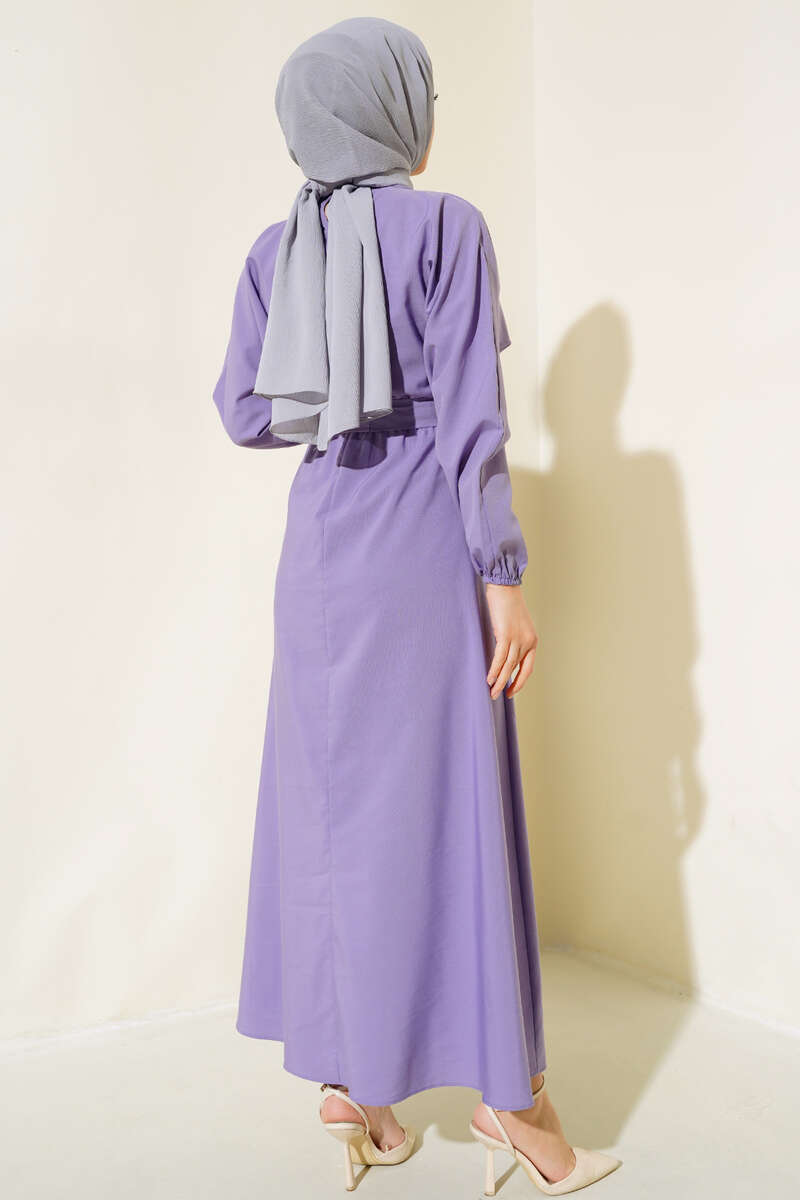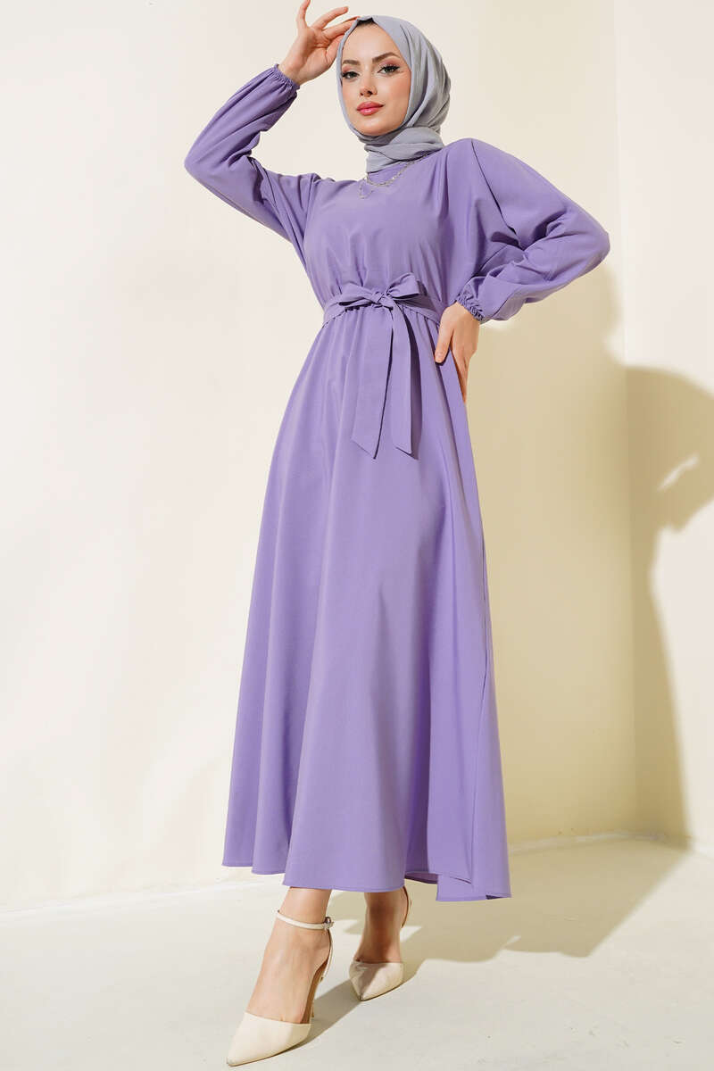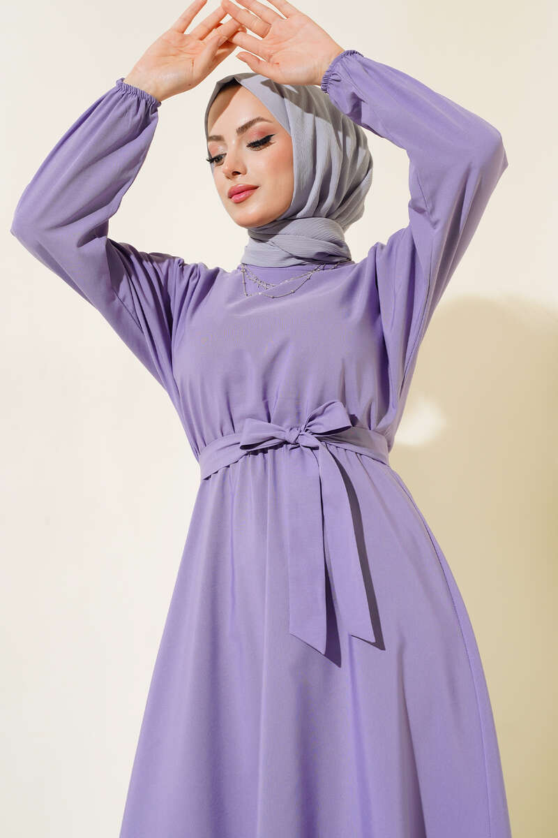 Bel Lastikli Elbise Lila