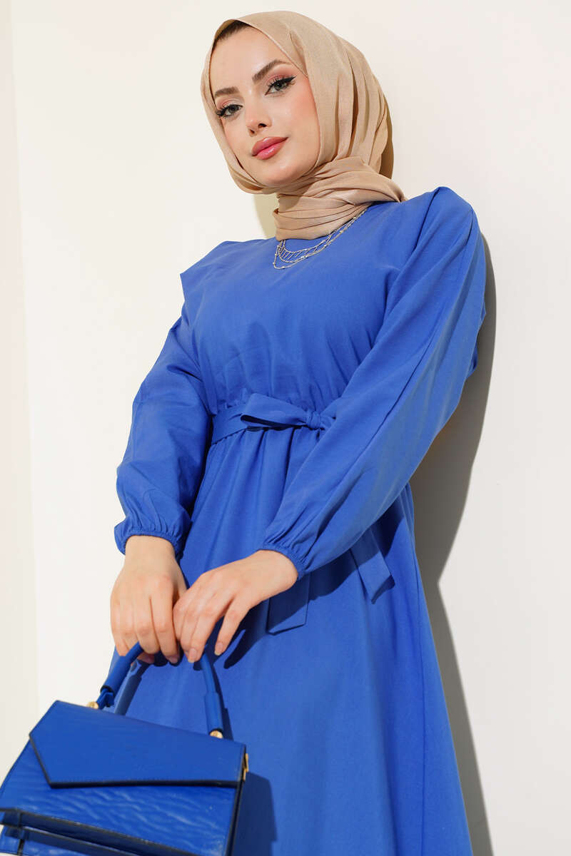Yeni sezon elbisemiz sizler için geldi. Elbisemizin beli lastiklidir. Yarasa koldur. Kol bilekleri lastiklidir. Elbisemizin kendi kumaşından kuşağı vardır. Ense düğmelidir. Astarsızdır. Sade ve sportif tasarımlı elbisemiz bahar ve yaz aylarının favorisi olacaktır. Renk seçenekleri mevcuttur.