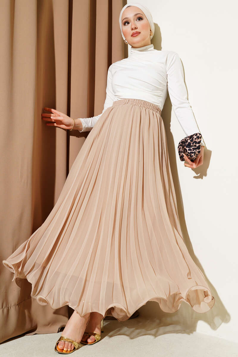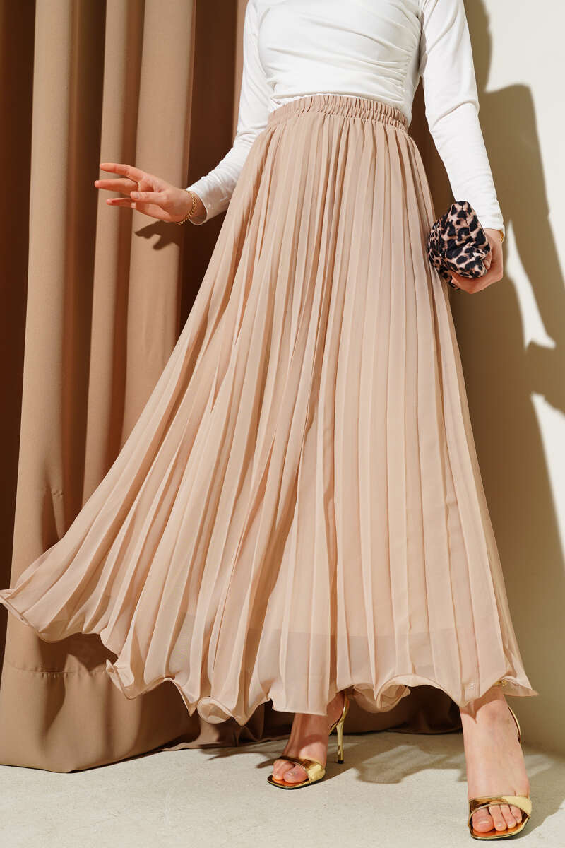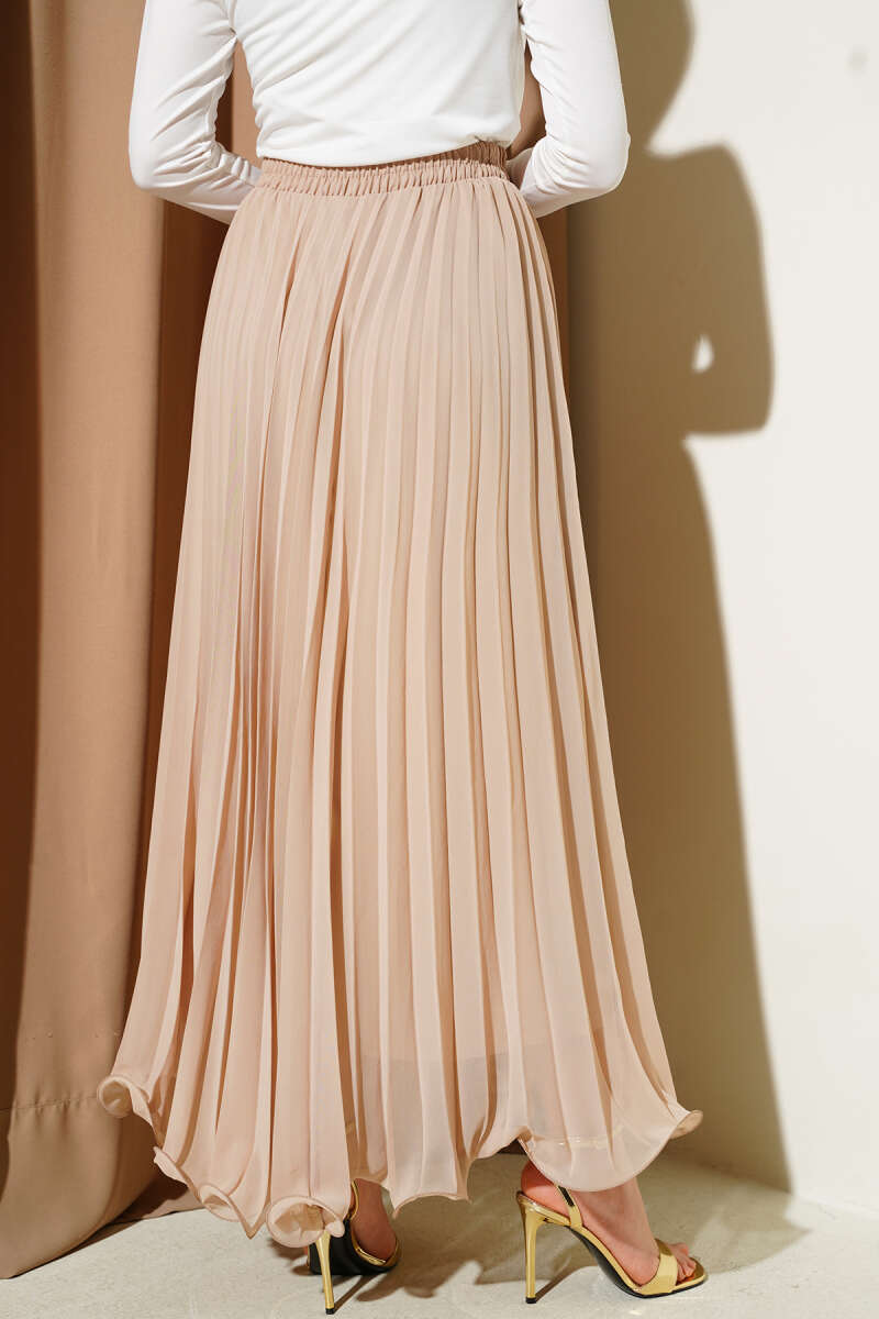 Geniş Bel Lastikli Çımalı Pantolon Bej