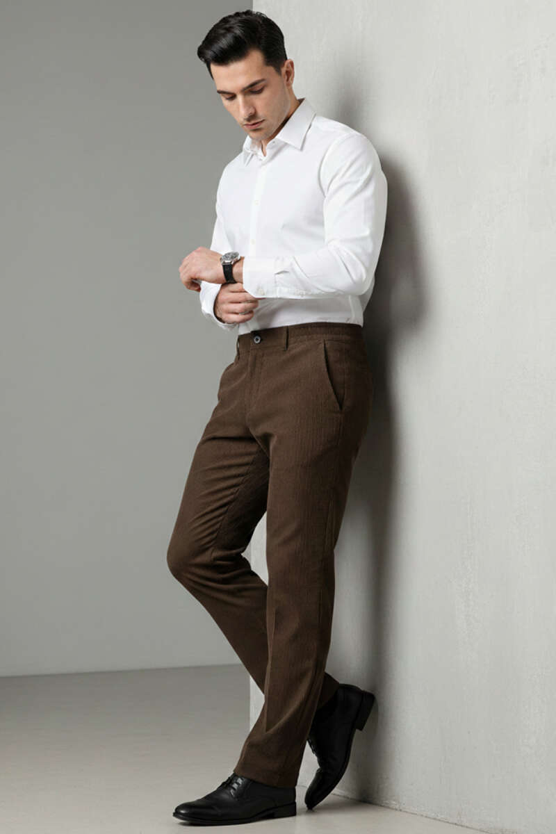 Bel Lastikli Fitilli Erkek Pantolon Kahve
