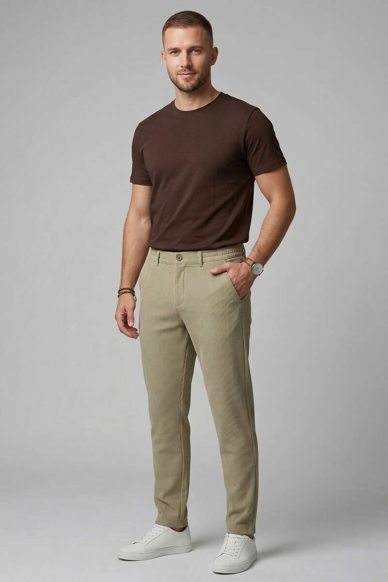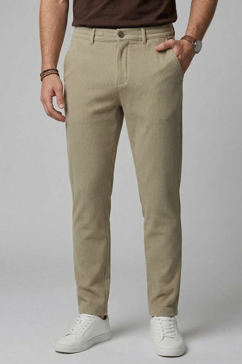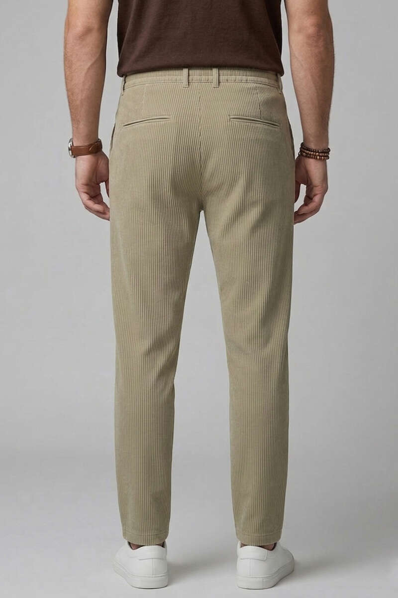 Bel Lastikli Fitilli Erkek Pantolon Taş