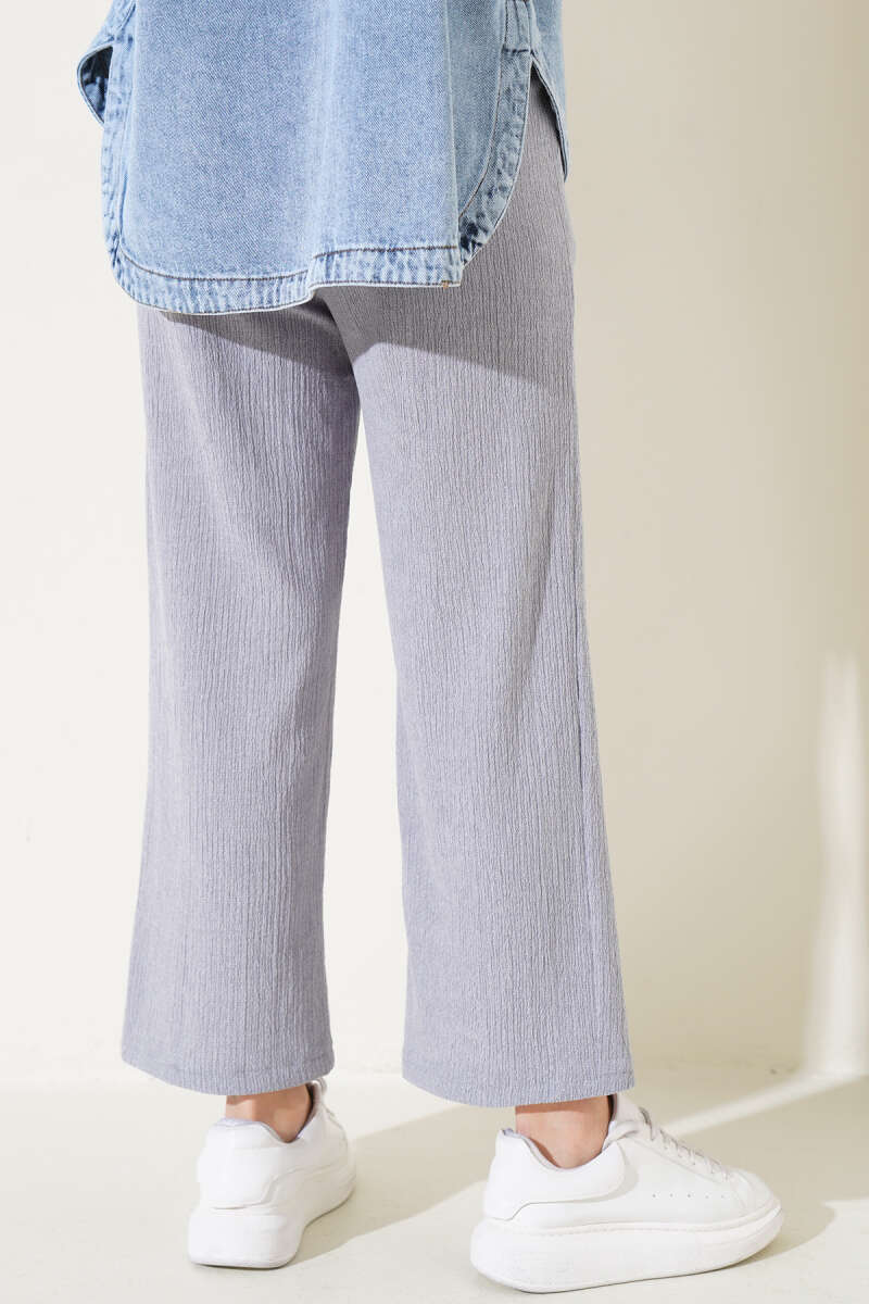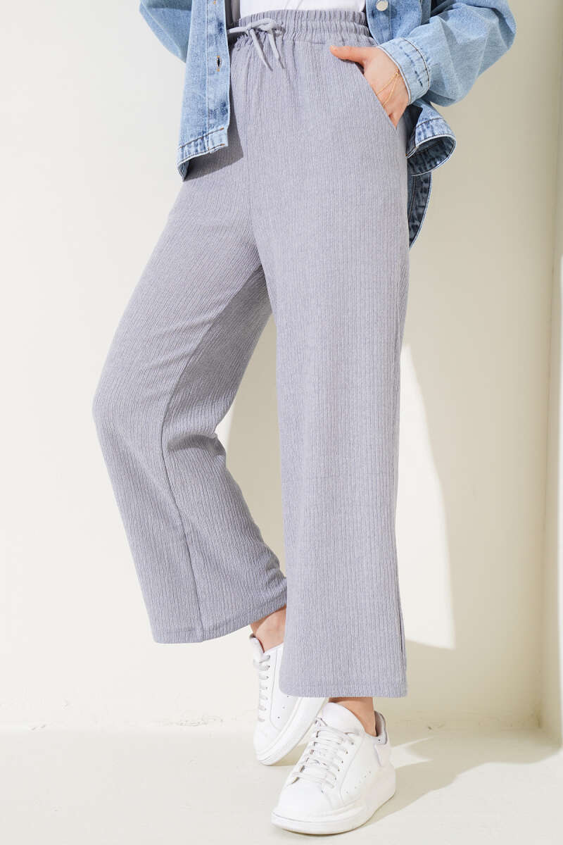 Bel Lastikli Geniş Paça Bürümcük Pantolon Gri