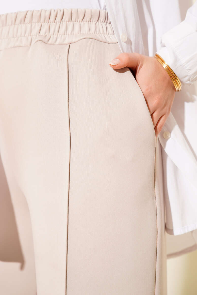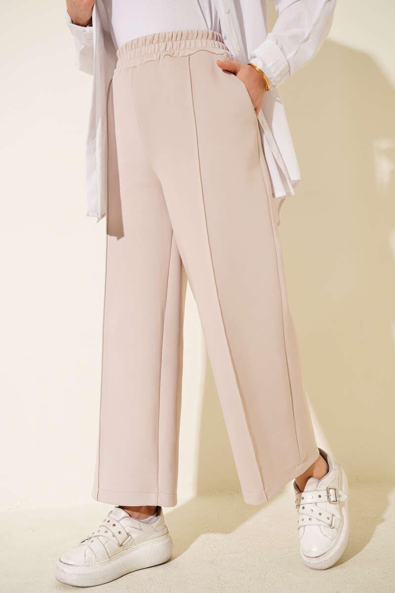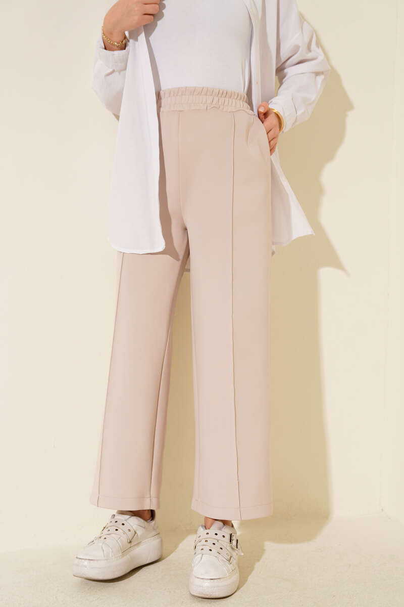 Paçası Yırtmaçlı Scuba Pantolon Bej