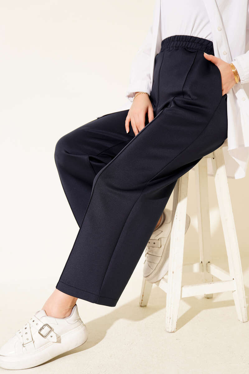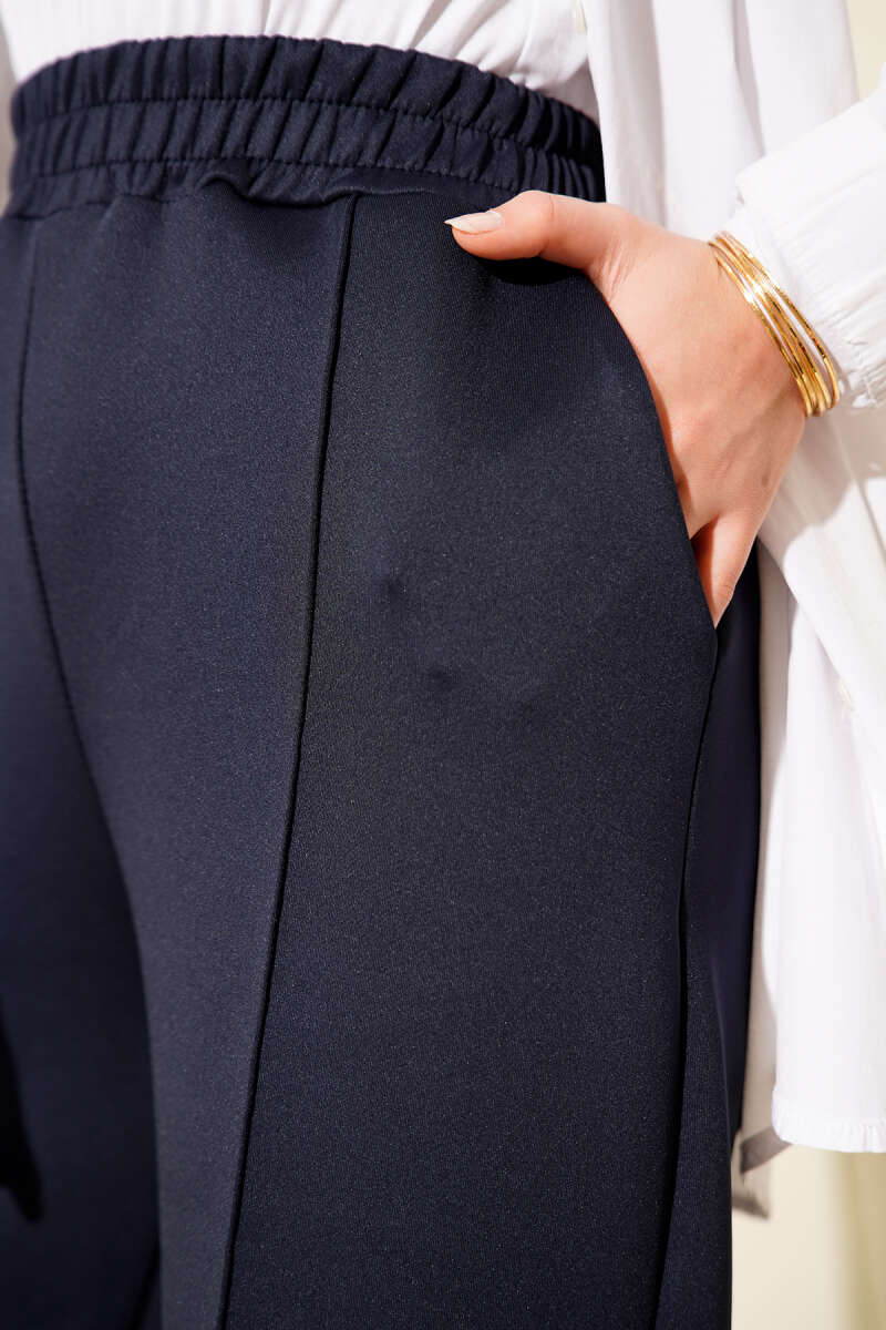 Paçası Yırtmaçlı Scuba Pantolon Lacivert