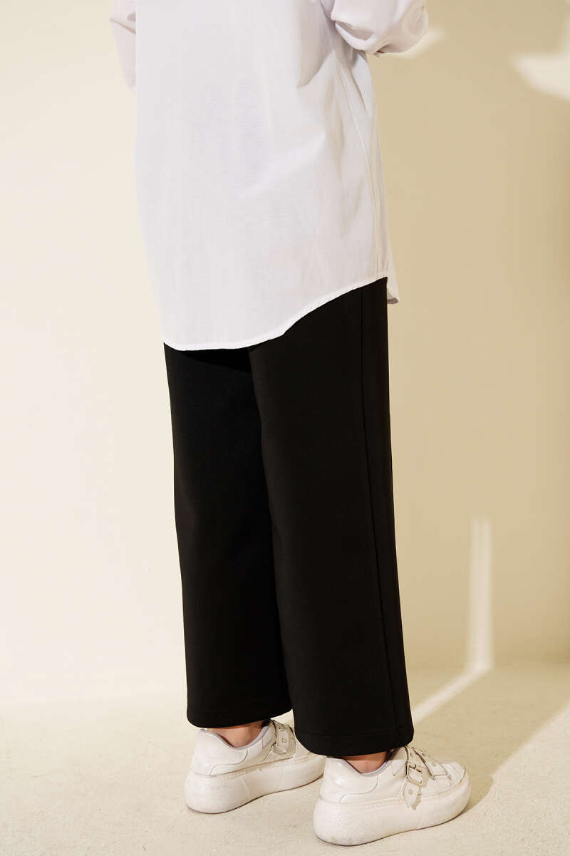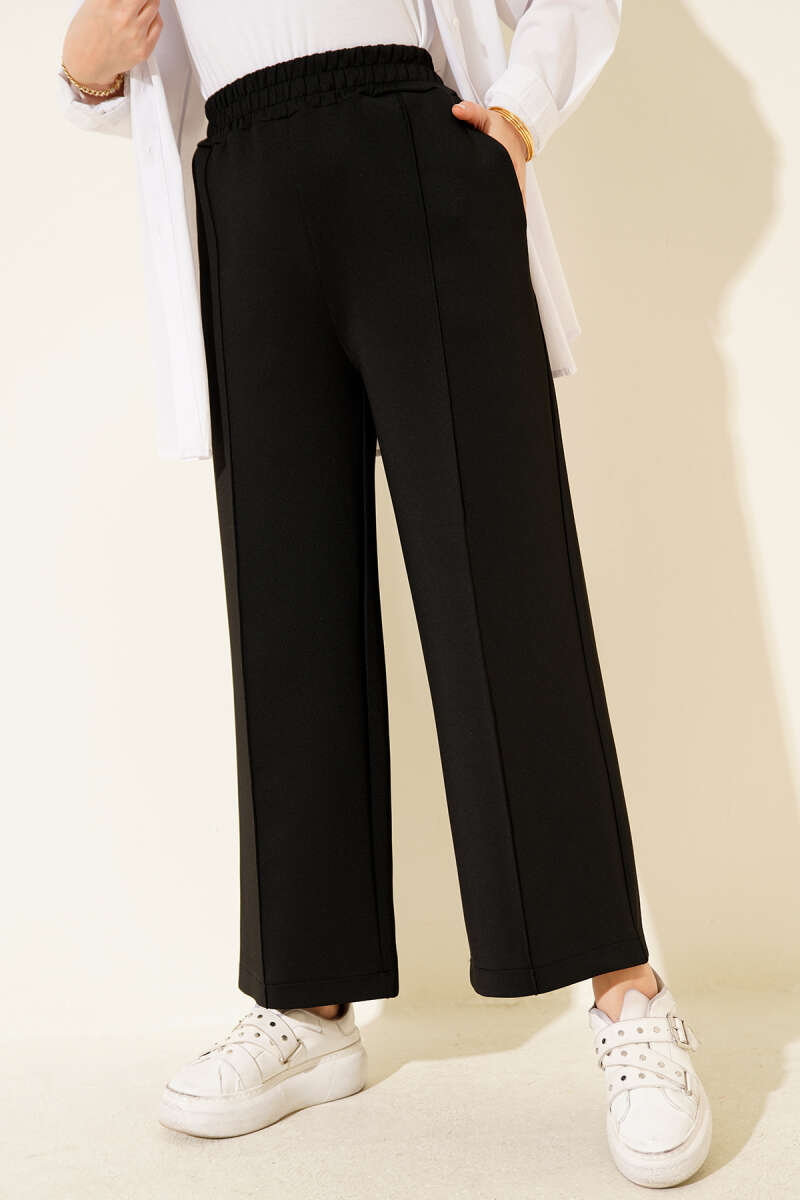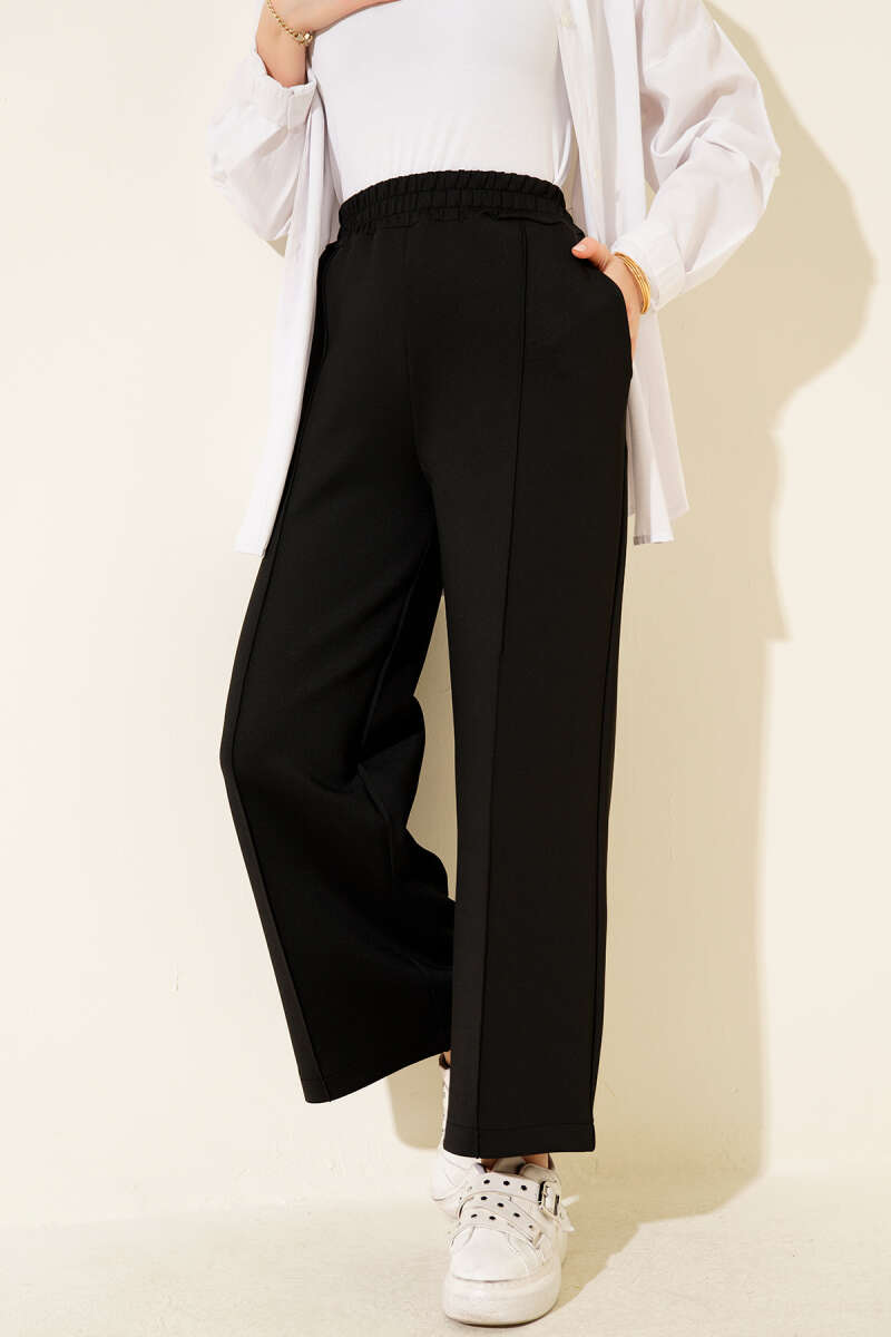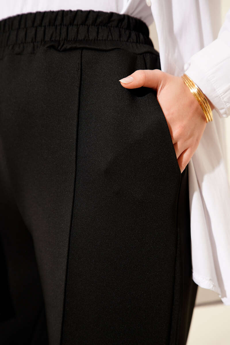 Geniş Bel Lastikli Çımalı Pantolon Siyah
