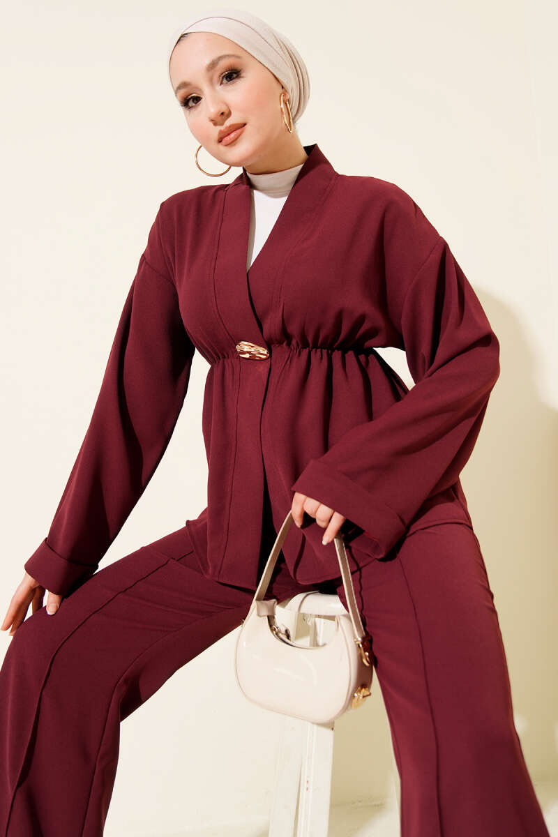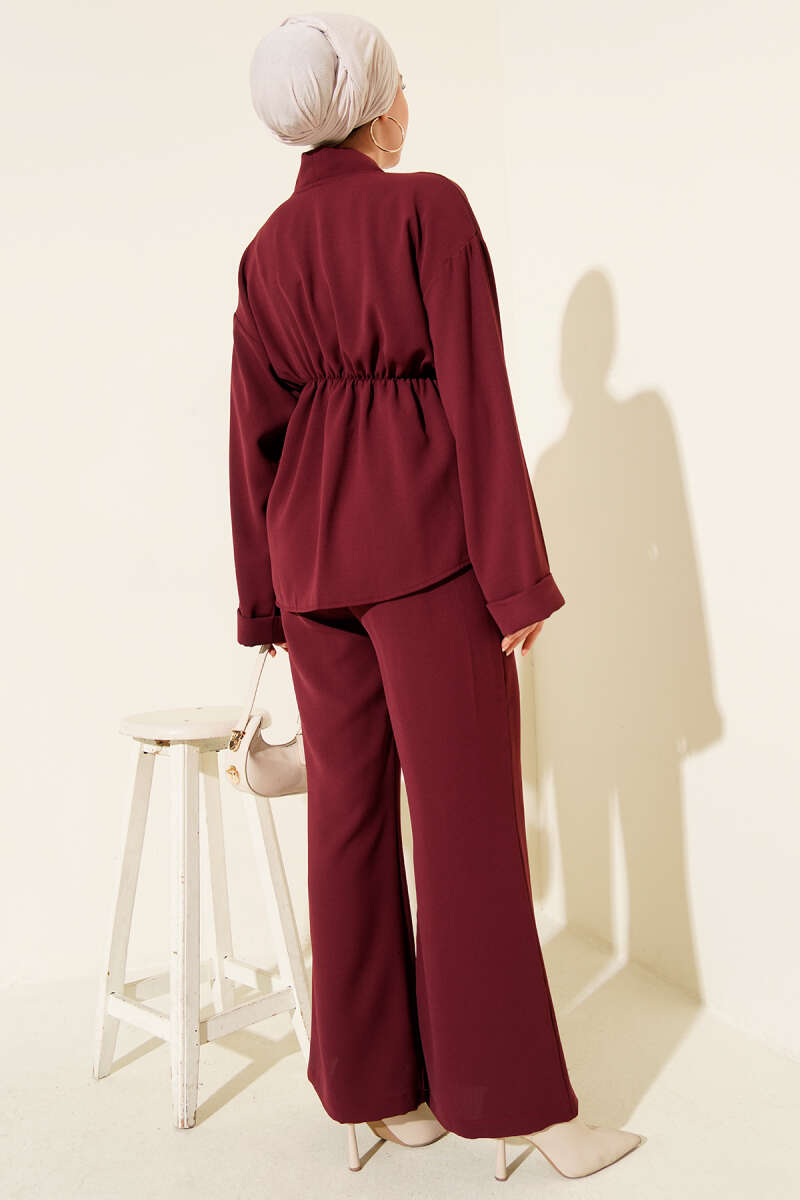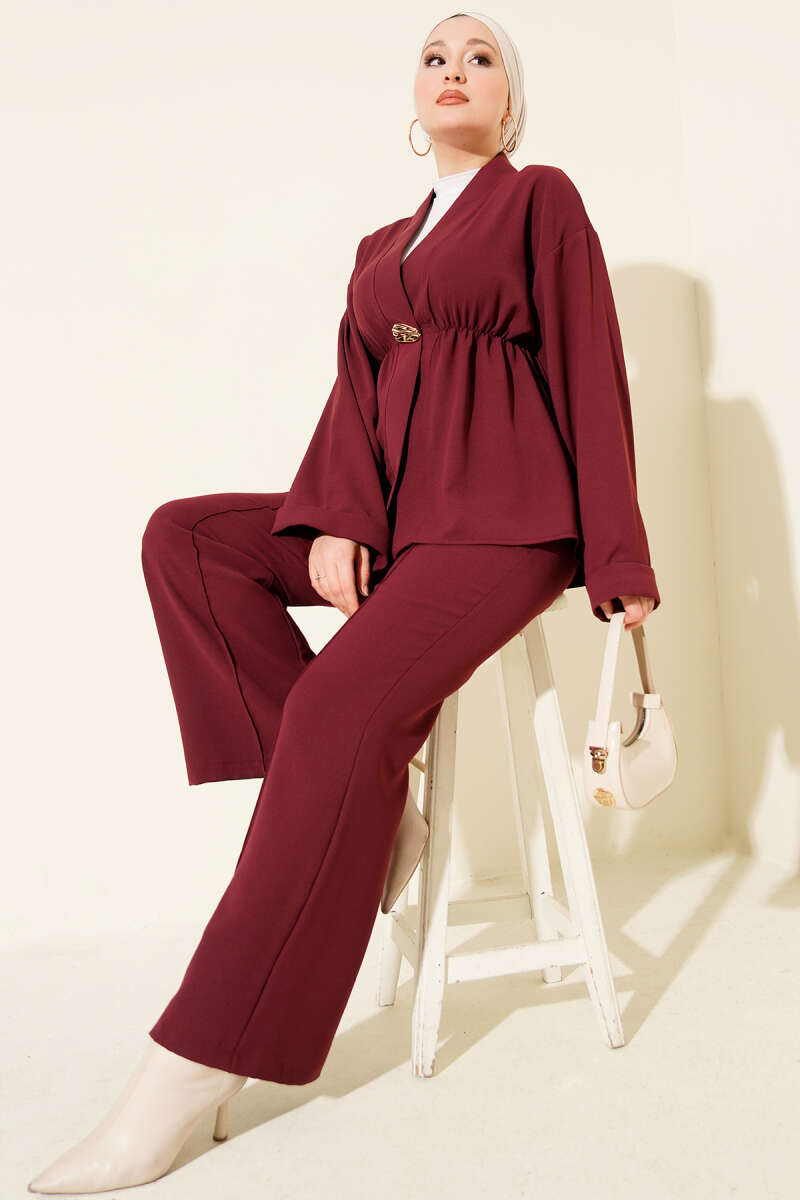 Bel Tünelli İncili Scuba İkili Takım Bordo