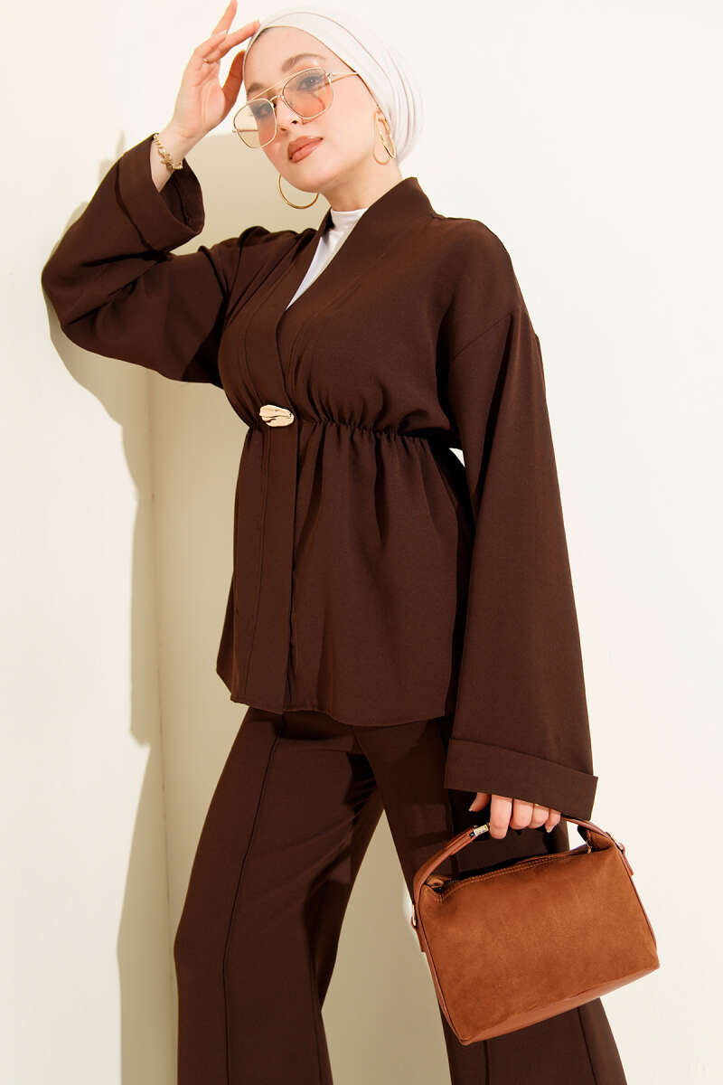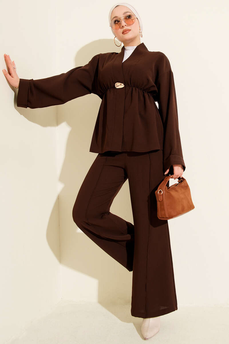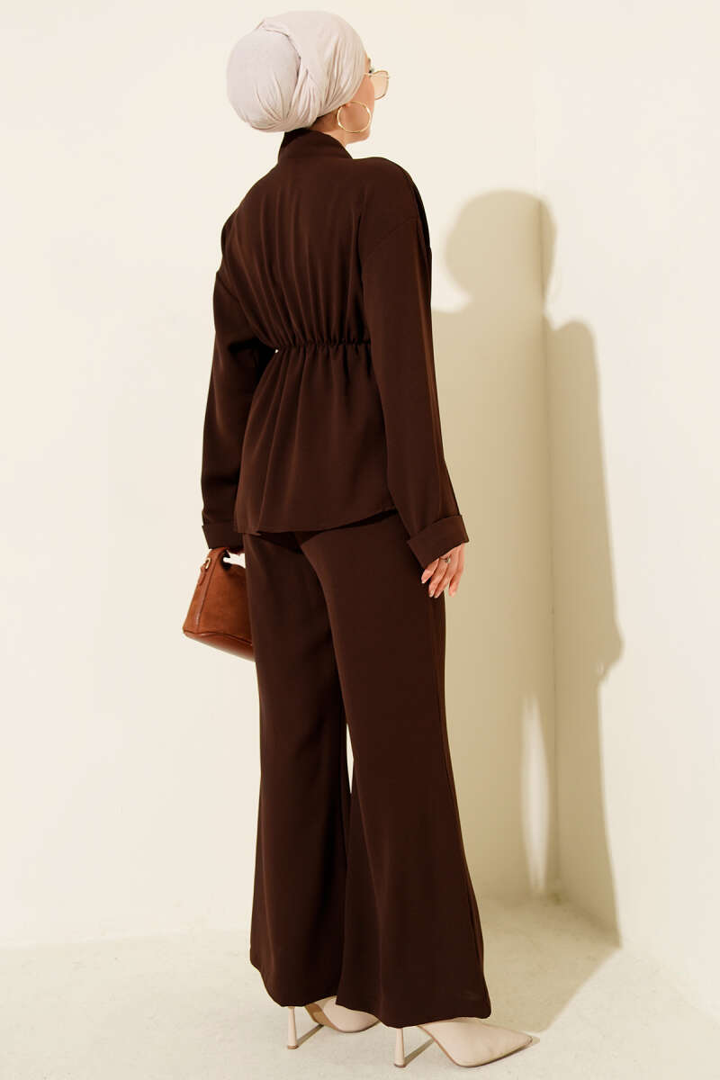 Fermuarlı İki İplik İkili Takım Kahve