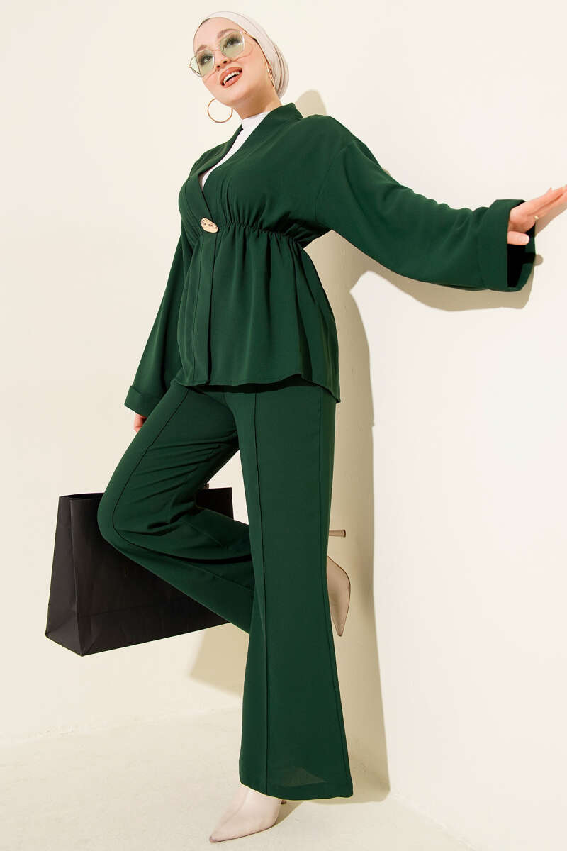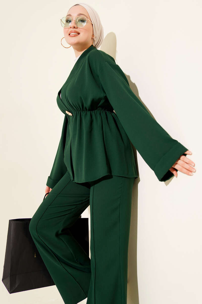 Bel Lastikli Gold Aksesuarlı İkili Takım Bordo
