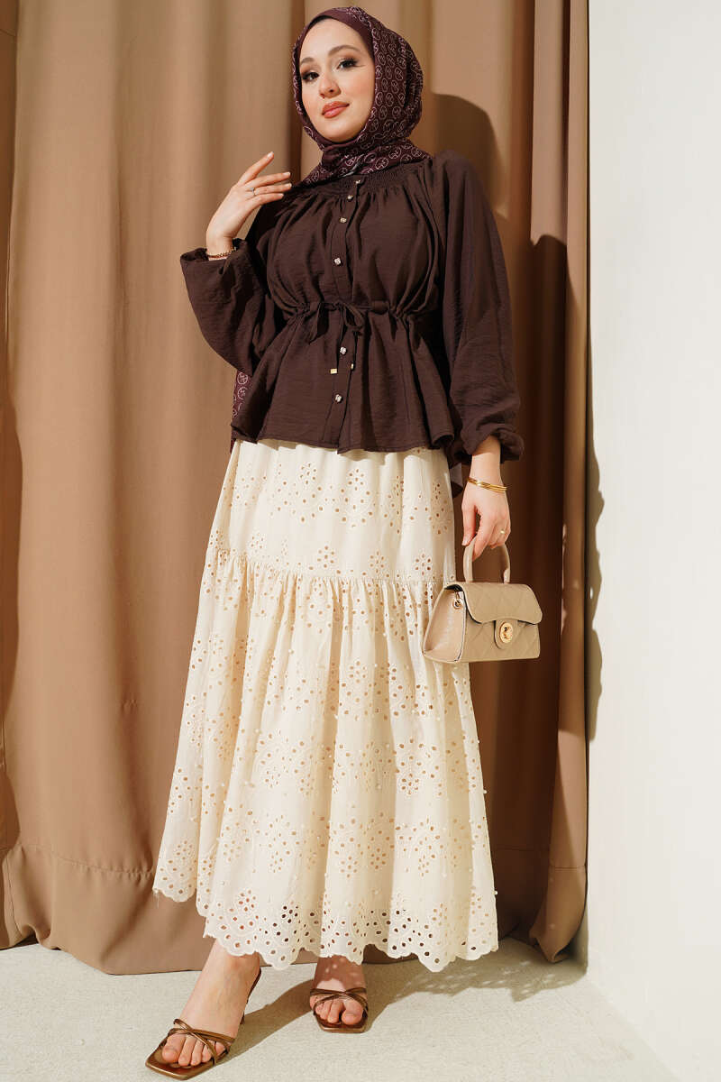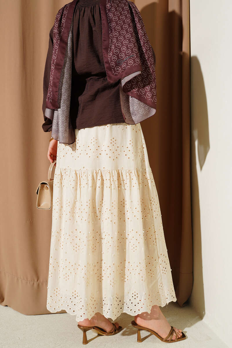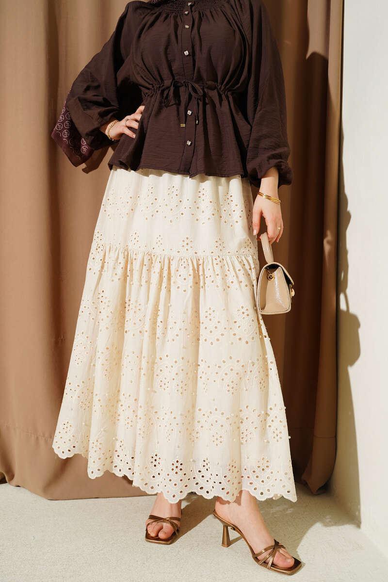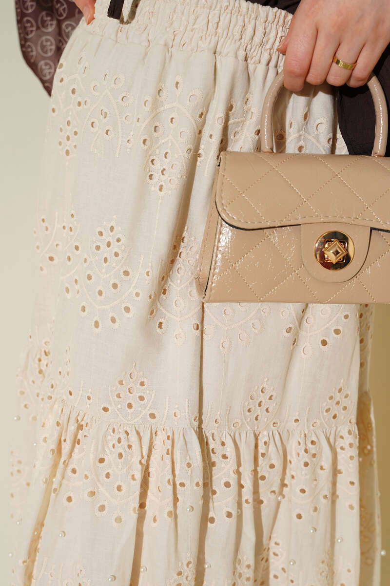Beli Lastikli Cepli Kloş Etek Beyaz