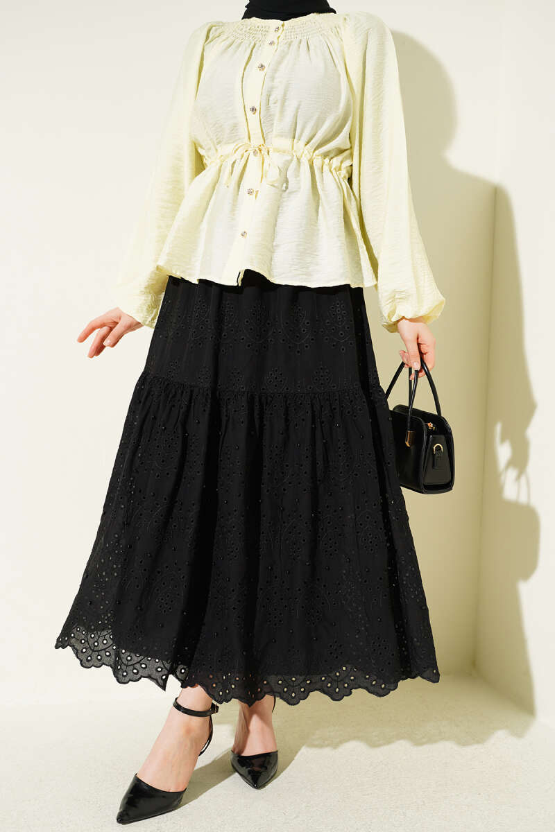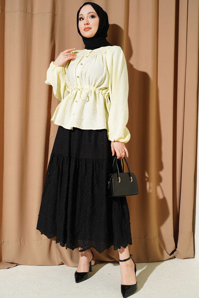 Beli Lastikli Cepli Kloş Etek Çağla Yeşili