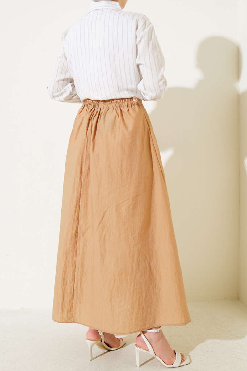 Kemer Aksesuarlı Ekoseli Etek Haki