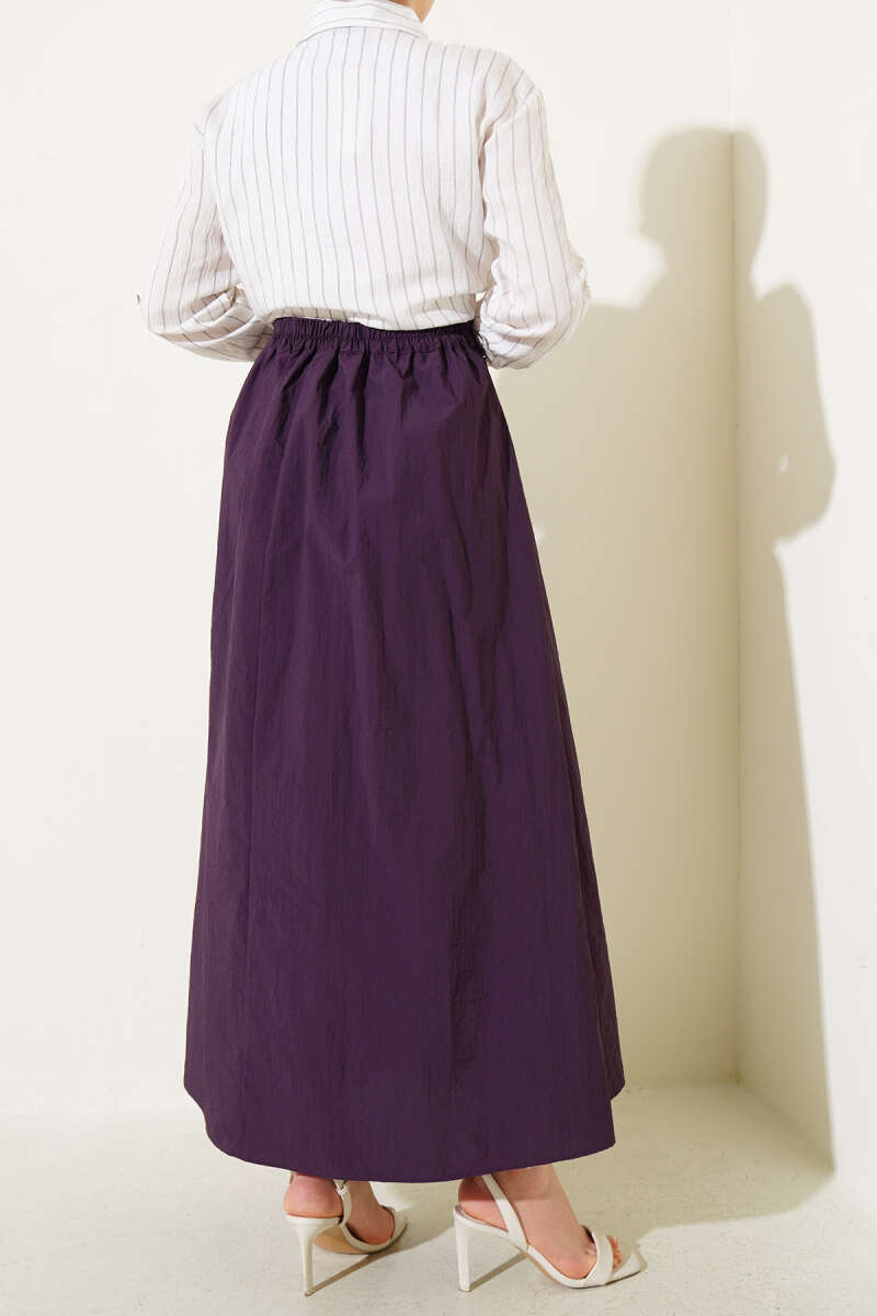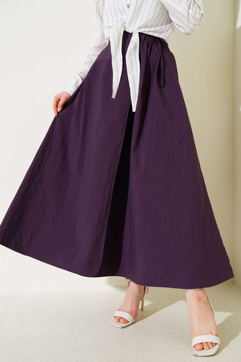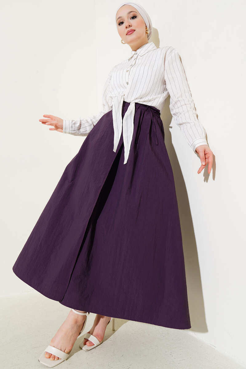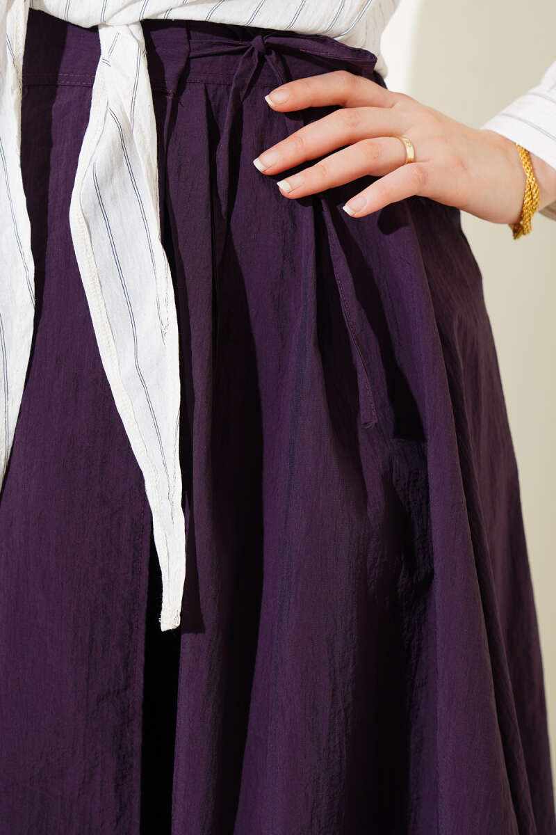 Kemer Aksesuarlı Ekoseli Etek Bordo