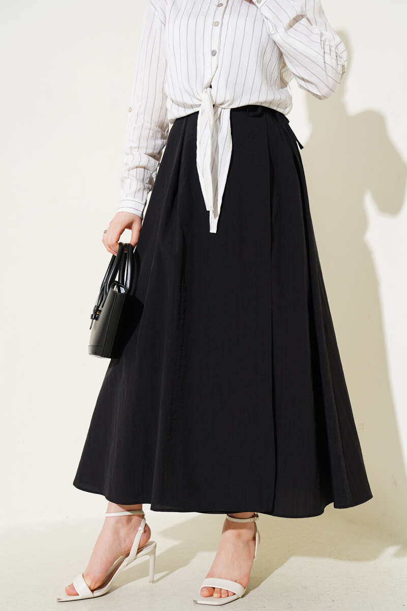Kemer Aksesuarlı Ekoseli Etek Haki