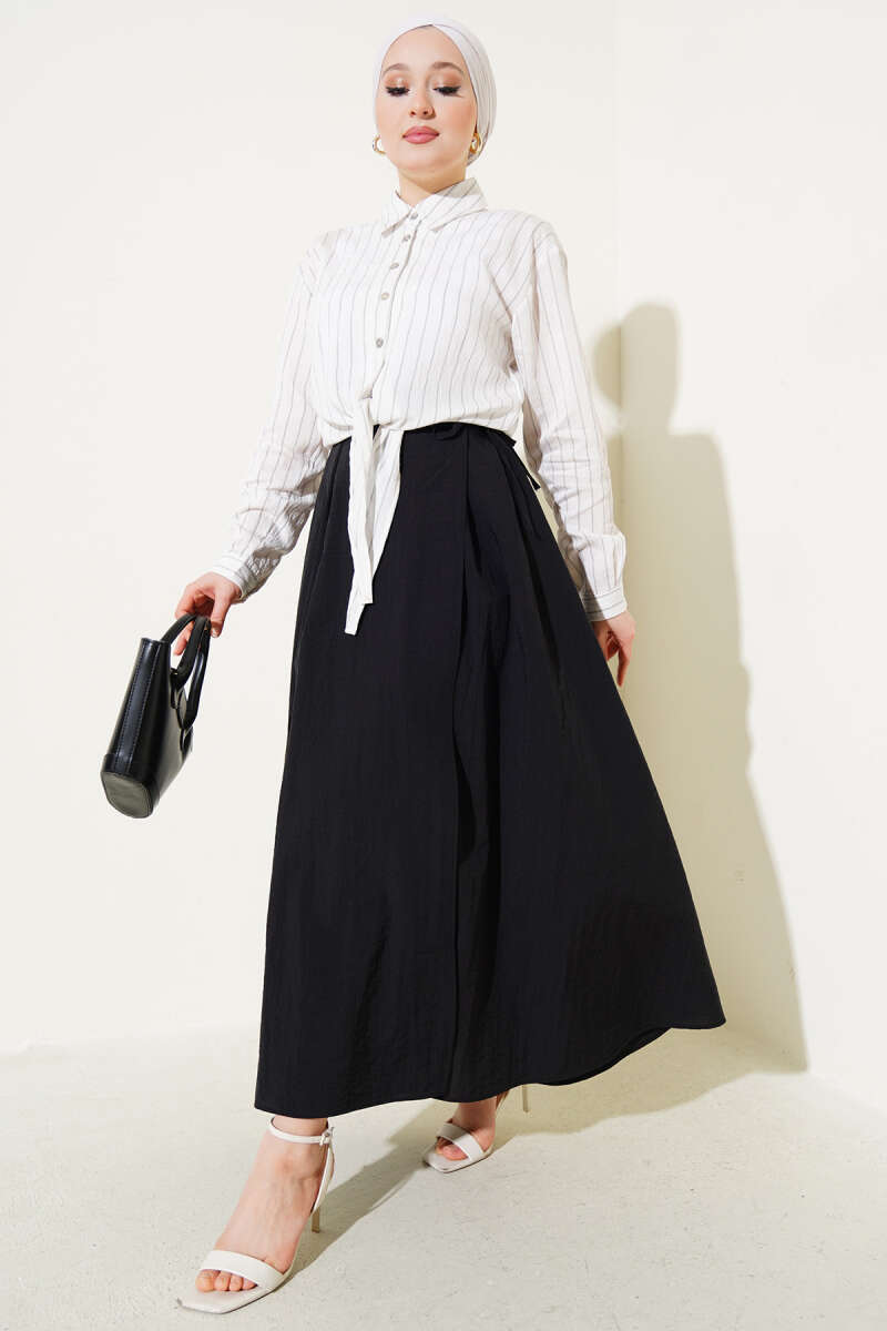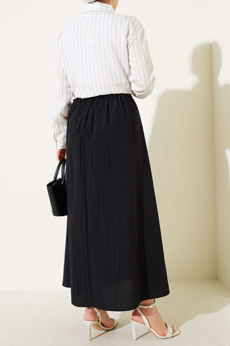 Bel Lastikli Düğme Detaylı İkili Takım Siyah