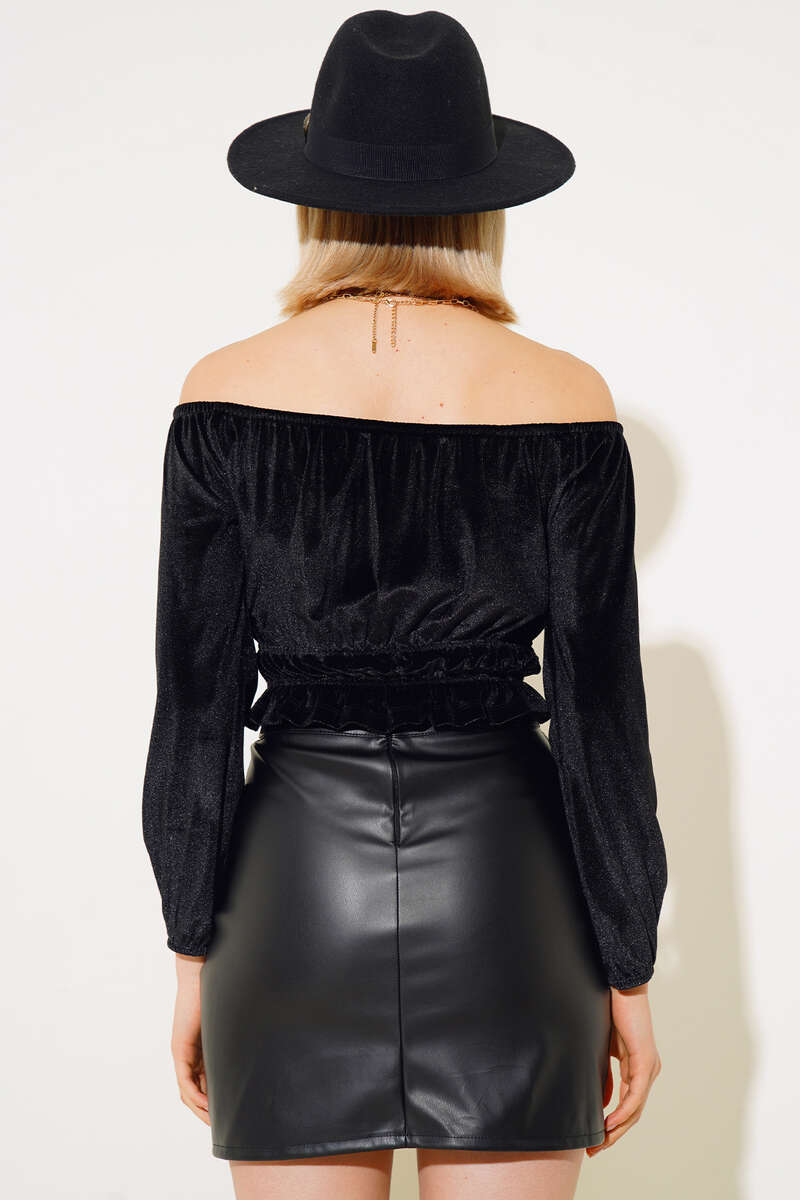 Yeni sezon crop modelimizi çok seveceksiniz. Kadife crobumuz şık bir görünüme sahiptir. Belden lastikli crop modelimiz uzun kollu modeldir. Önden ipli model olan crop modelimizi rahatlıkla kombinleyebilirsiniz.