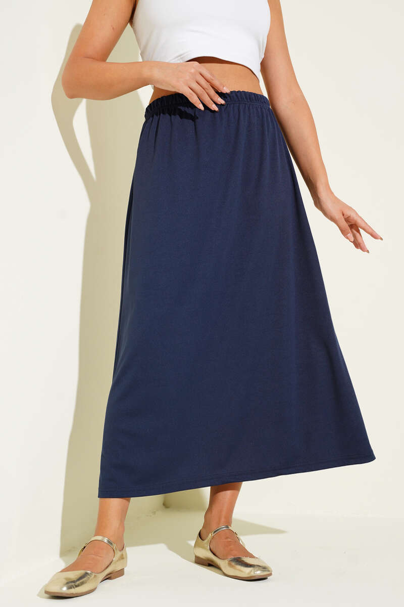 Bel Lastikli Süet Kloş Etek Lacivert