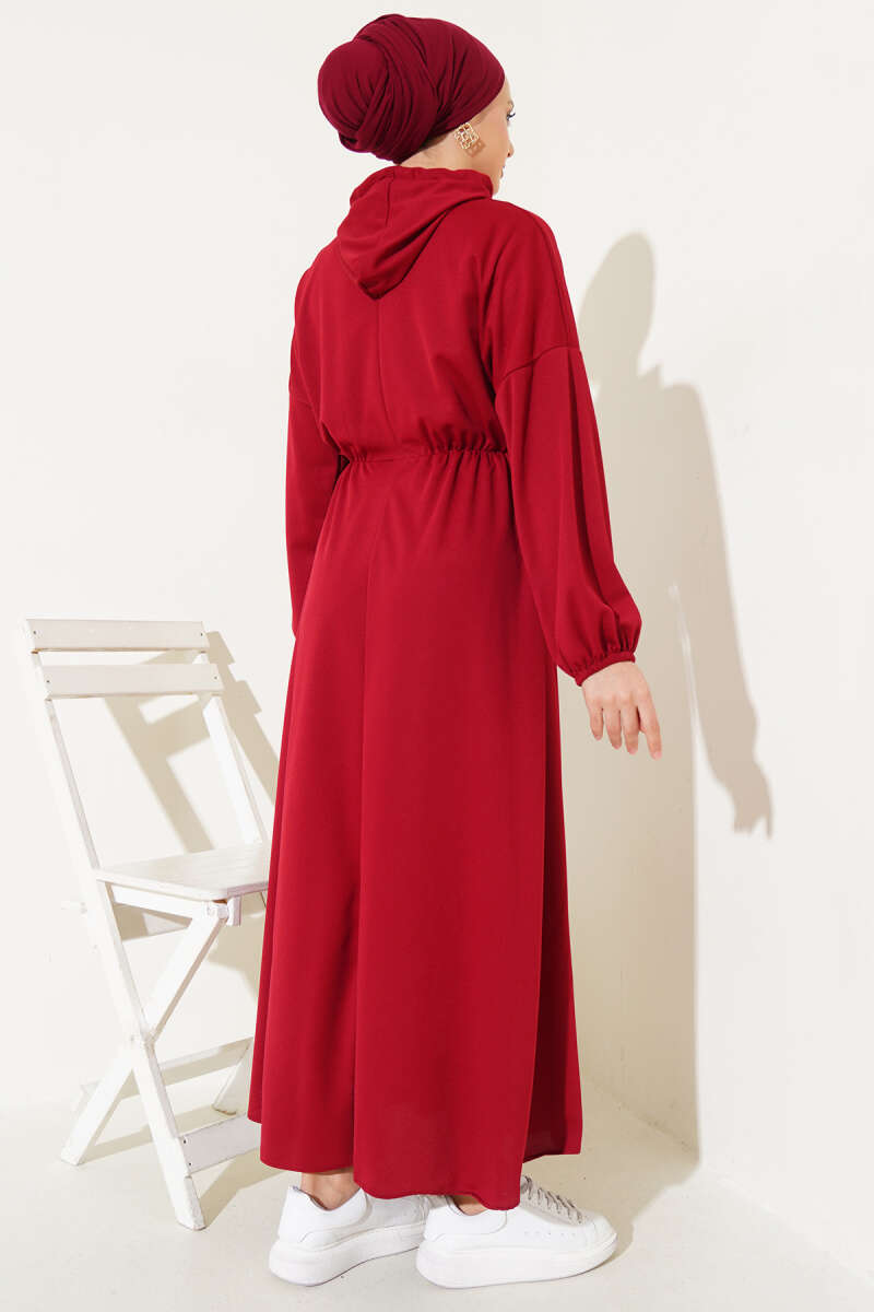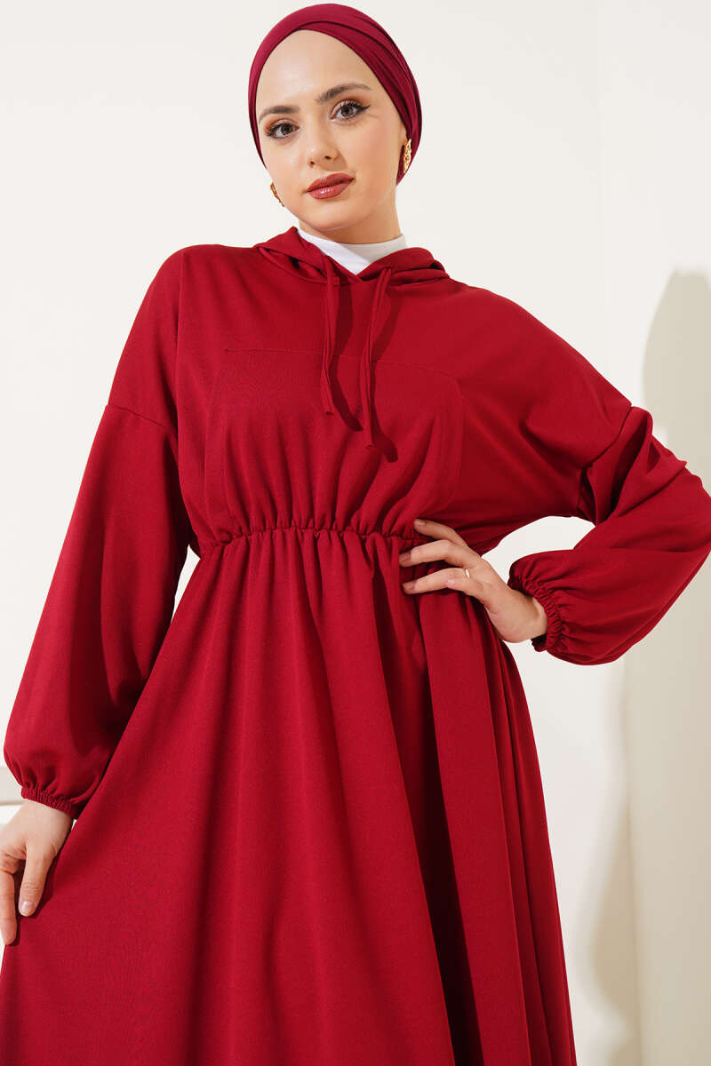 Pelerin Detaylı Pileli Triko Elbise Bordo