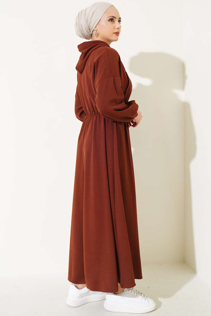 Şerit Ajur Desen Triko Elbise Acı Kahve