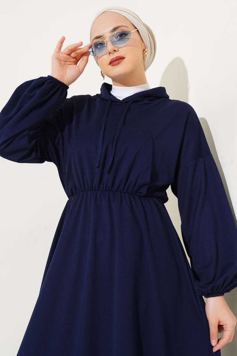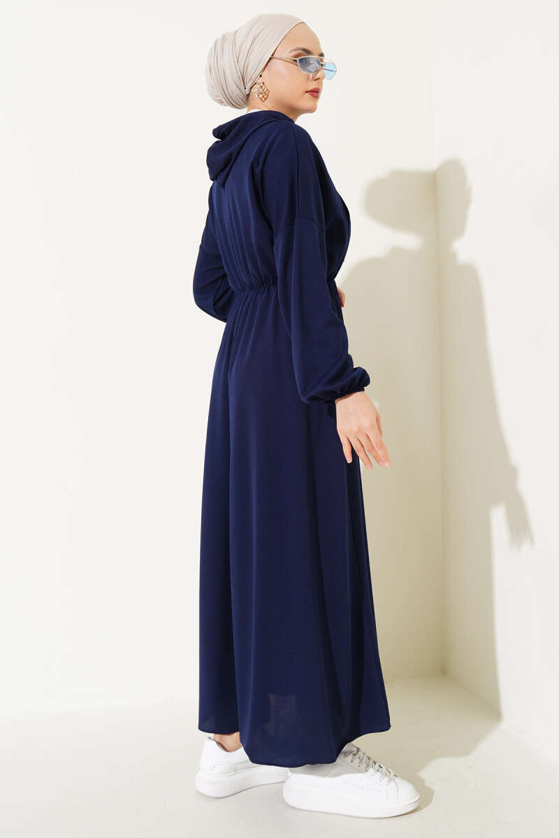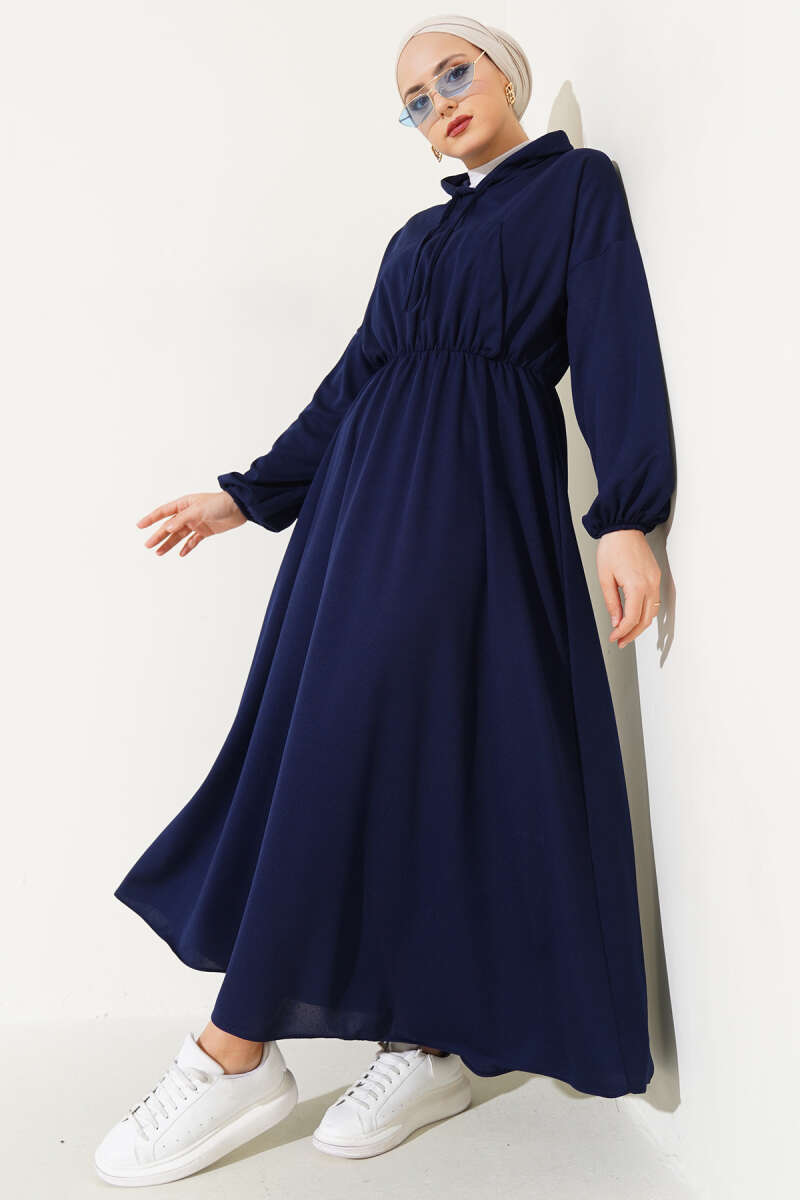 Gömlek Yaka Düğmeli Triko Elbise Lacivert