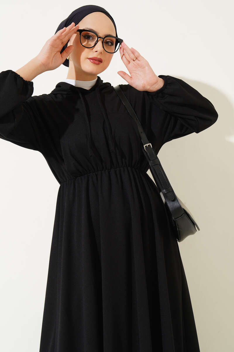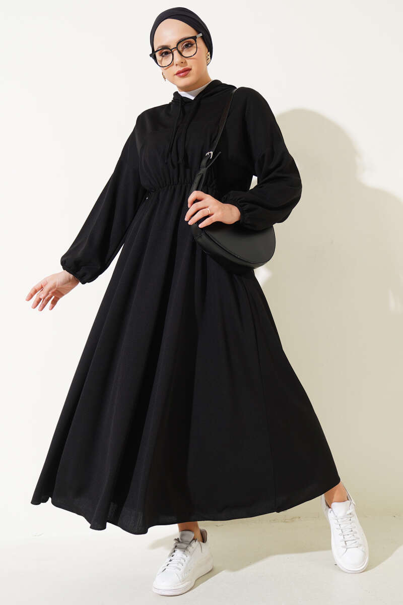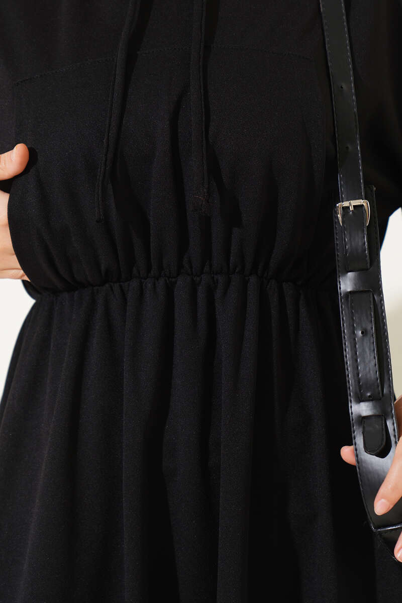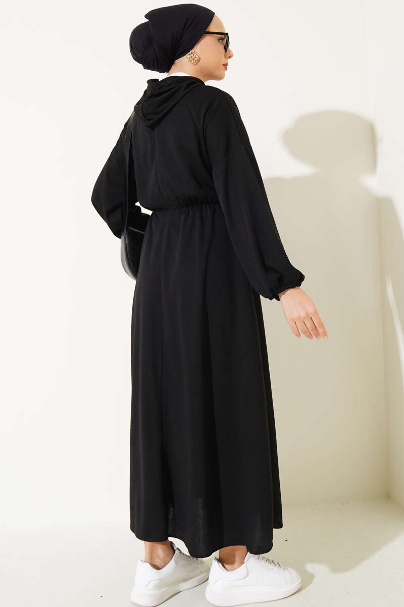 Gömlek Yaka Düğmeli Triko Elbise Siyah