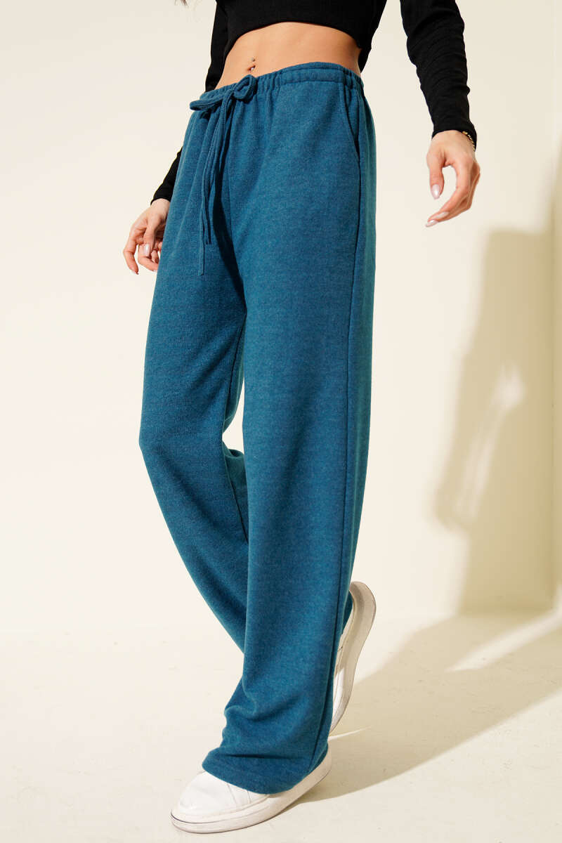 Beli Lastikli Bürümcük Pantolon Lacivert