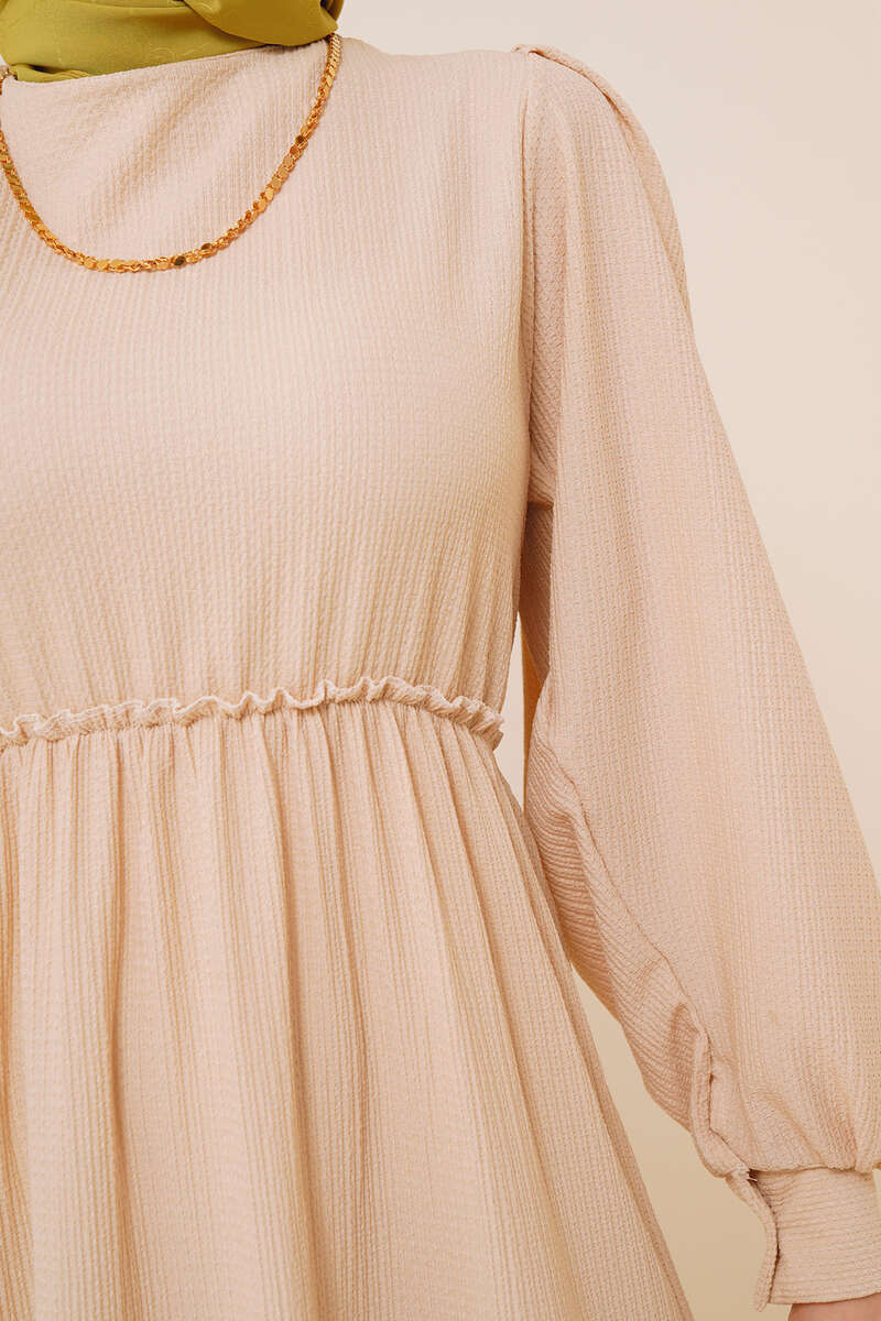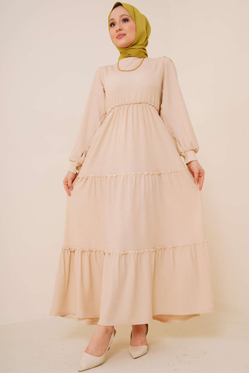 Bel Lastikli Kat Kat Lola Elbise Bej