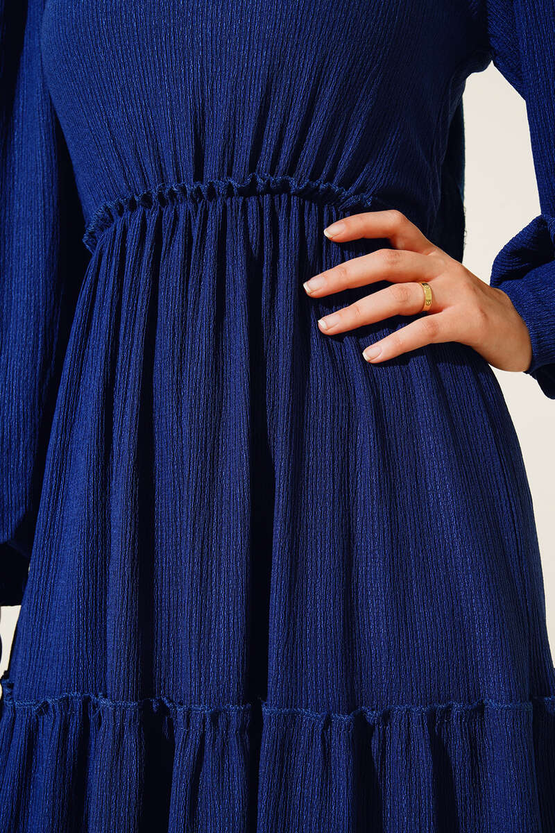 Bel Lastikli Kat Kat Lola Elbise İndigo
