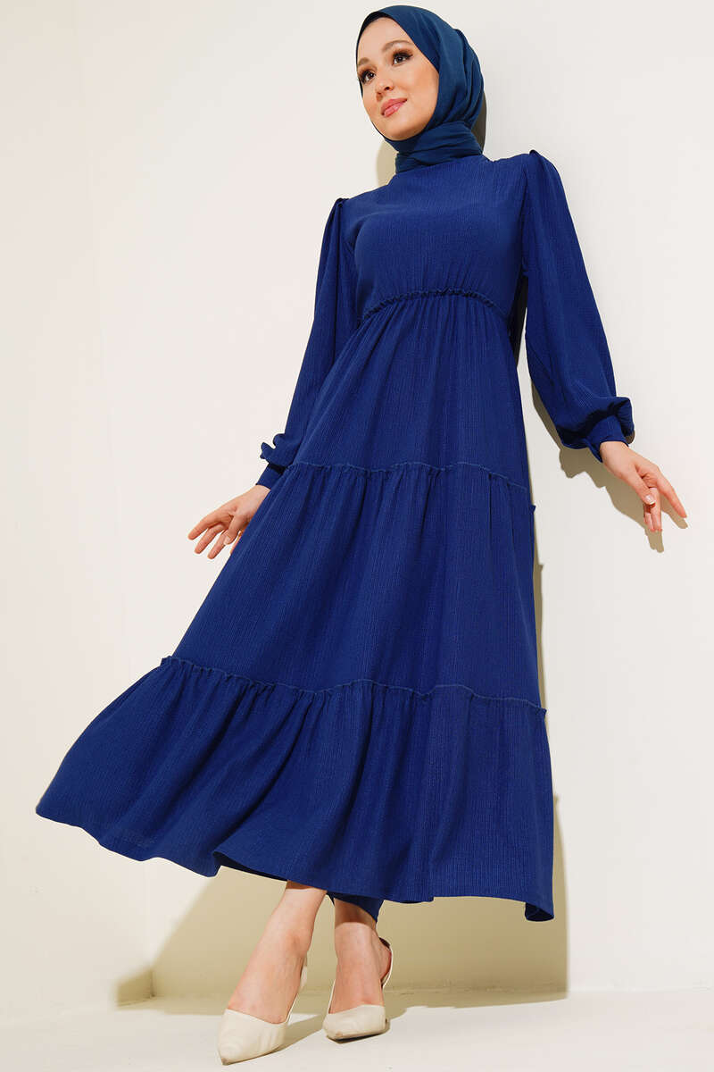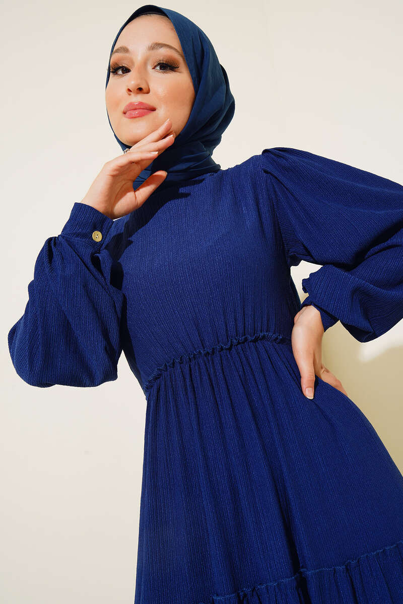 Bel Lastikli Kat Kat Lola Elbise İndigo